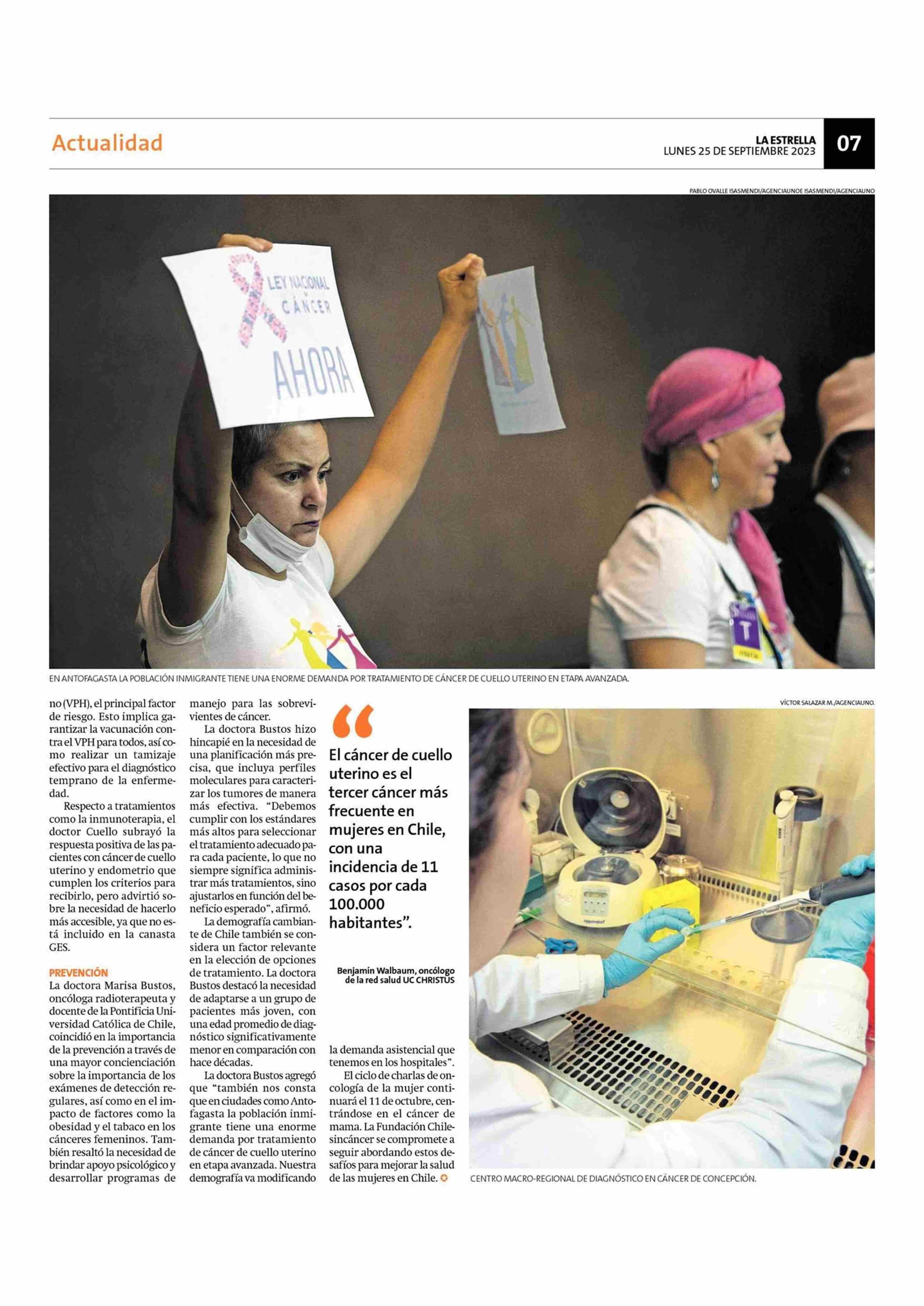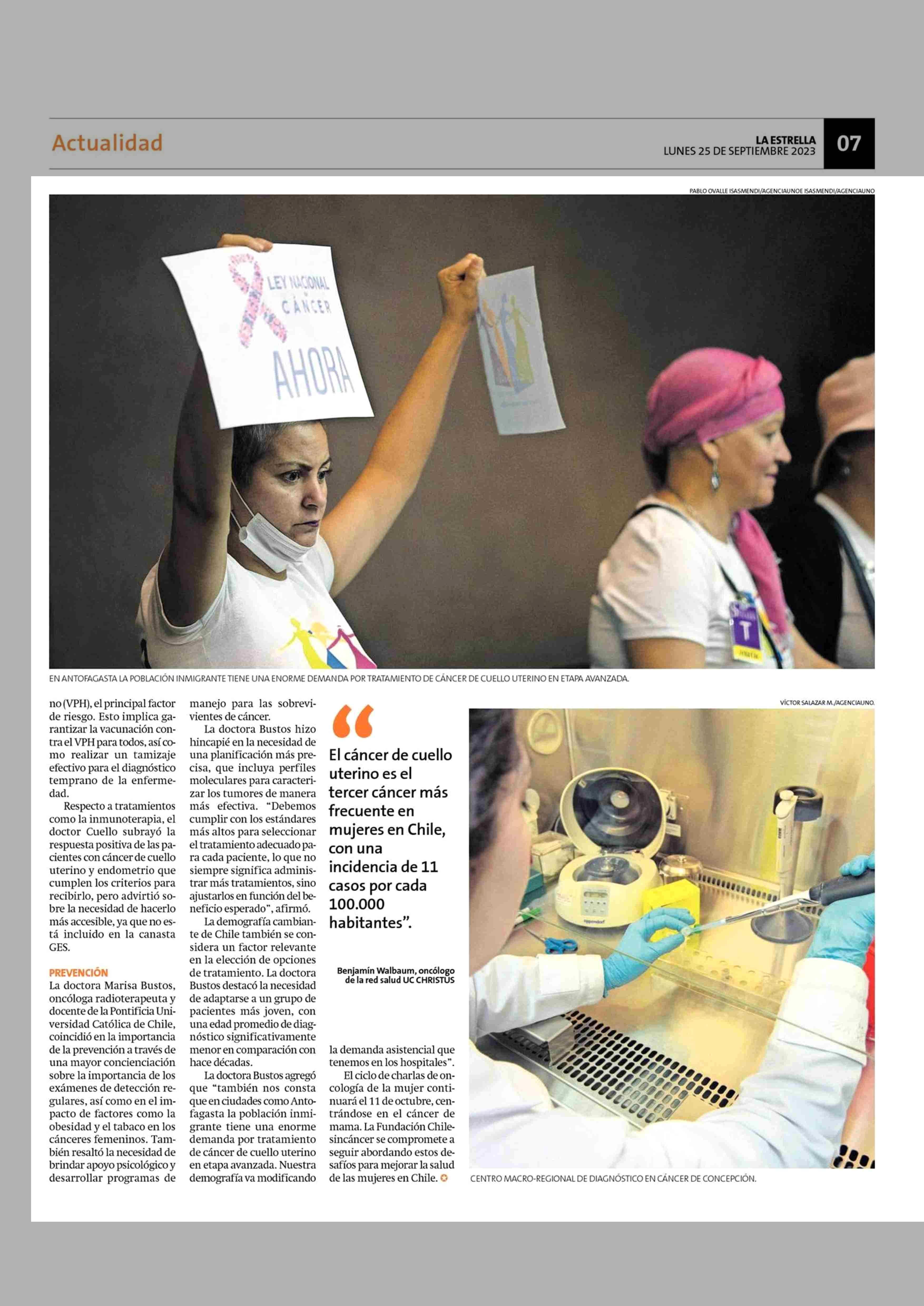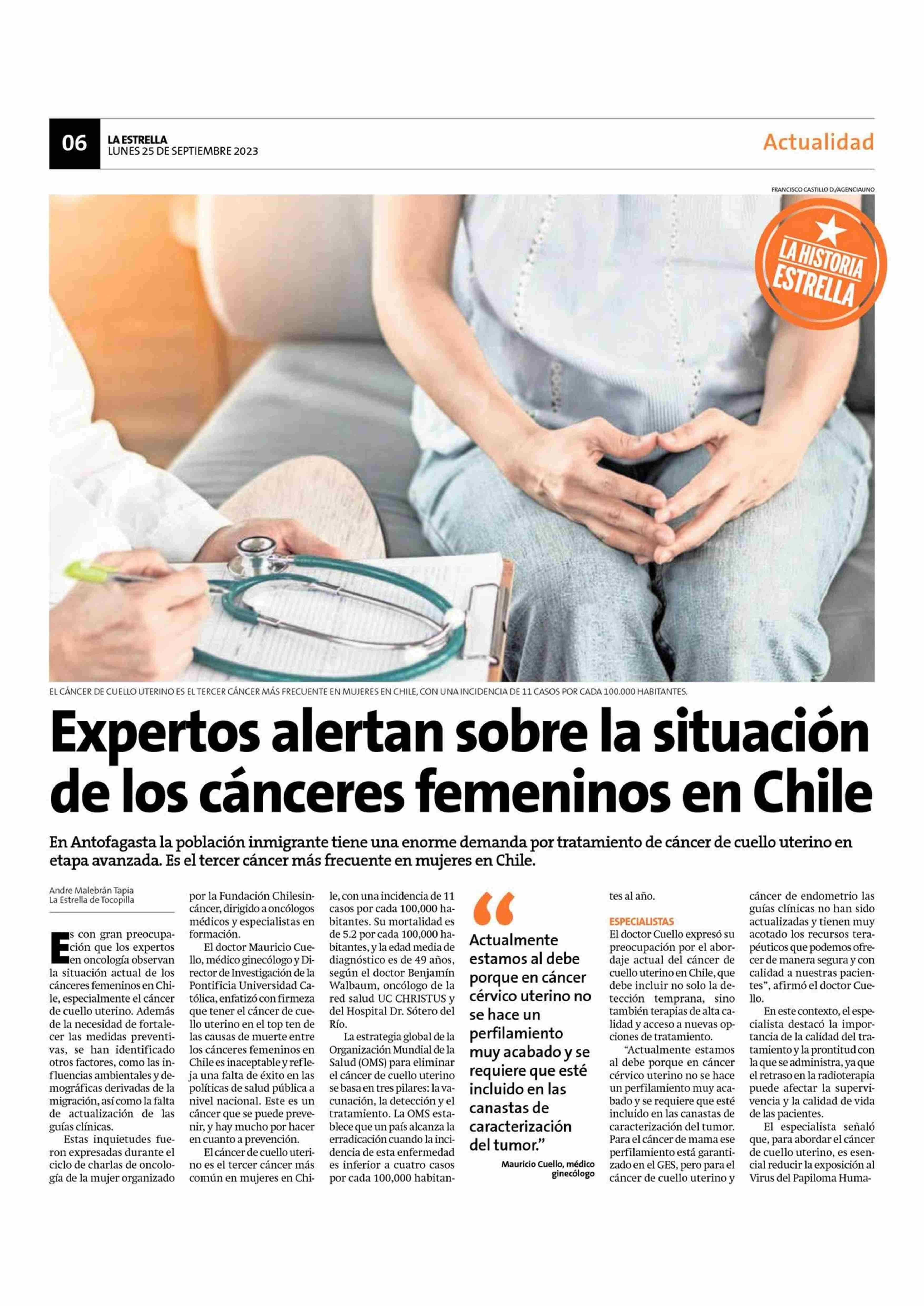 Expertos alertan sobre la situación de los cánceres femeninos en Chile 25-09-2023 La Estrella de Antofagasta |