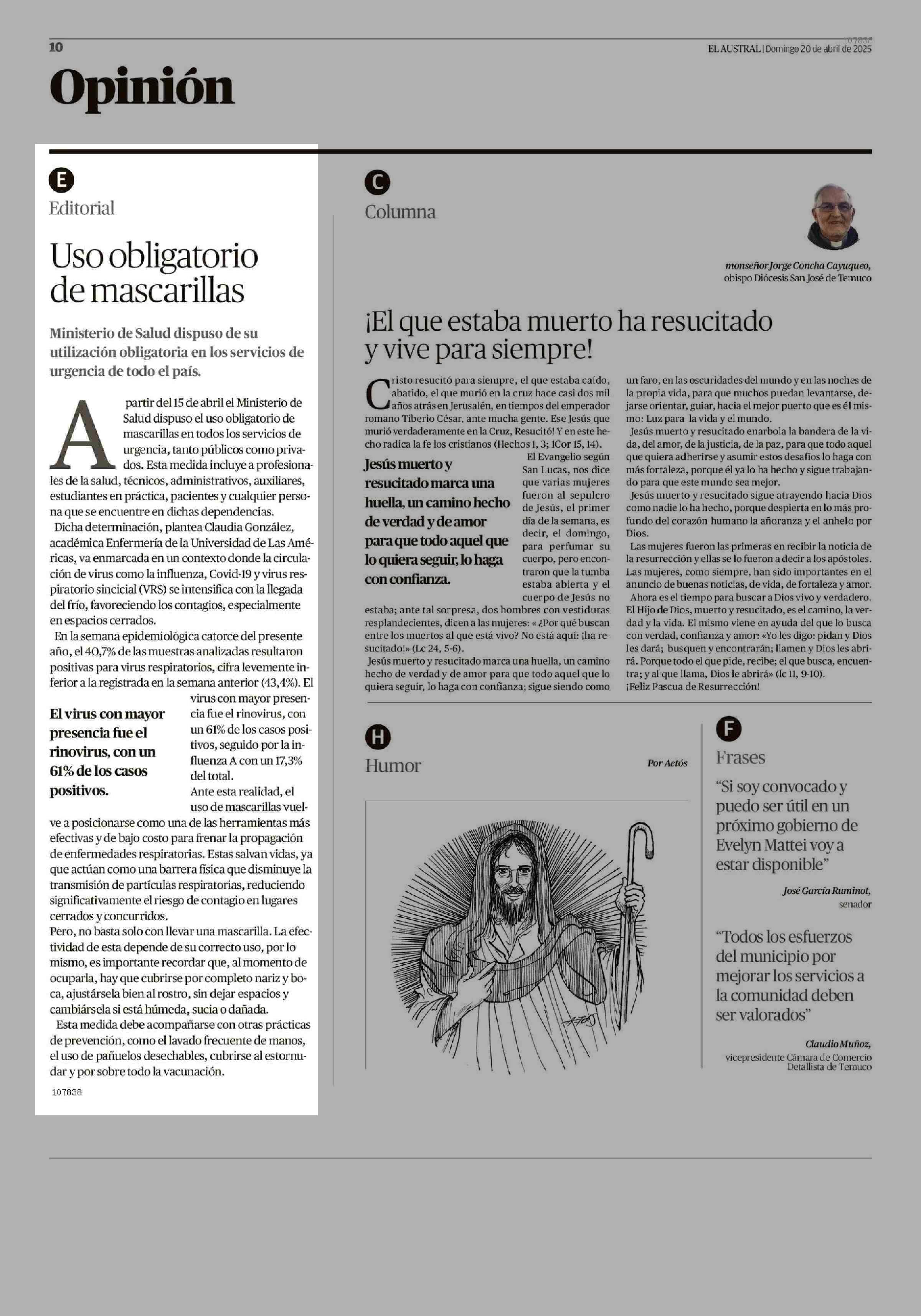 Uso obligatorio de mascarillas 20-04-2025 El Austral de la Araucanía |