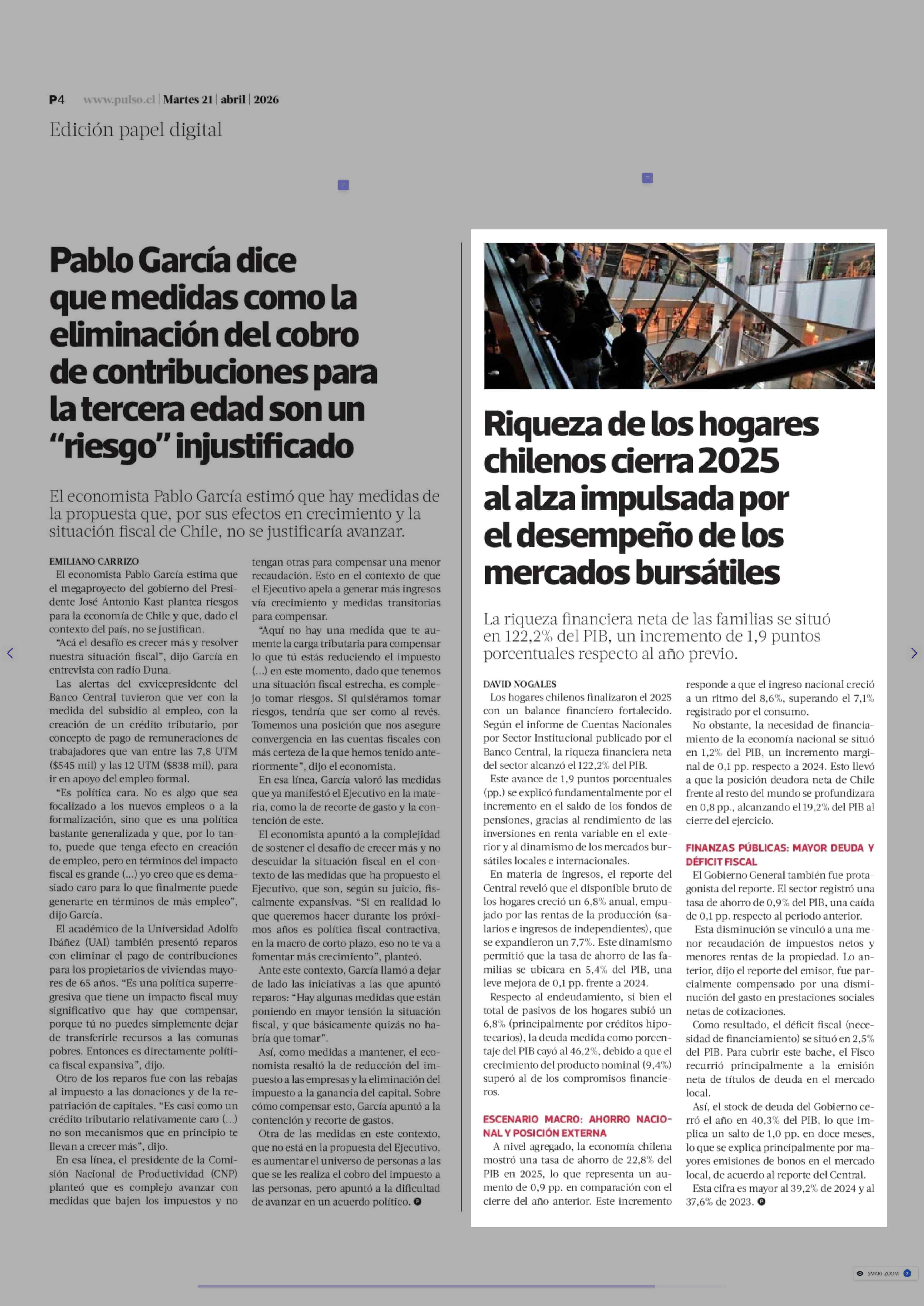 | Título: | Riqueza de los hogares chilenos cierra 2025 al alza impulsada por el desempeño de los mercados bursátiles |