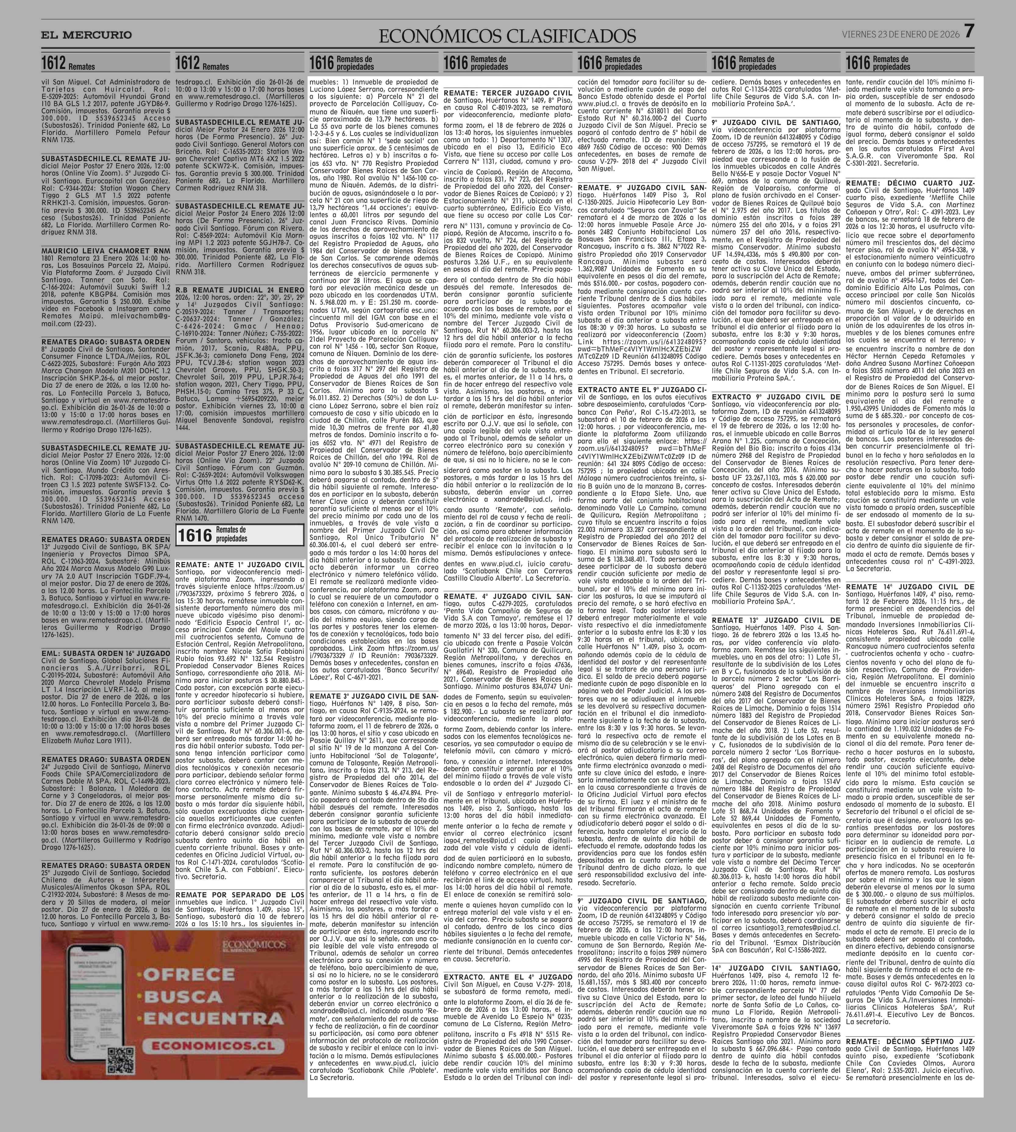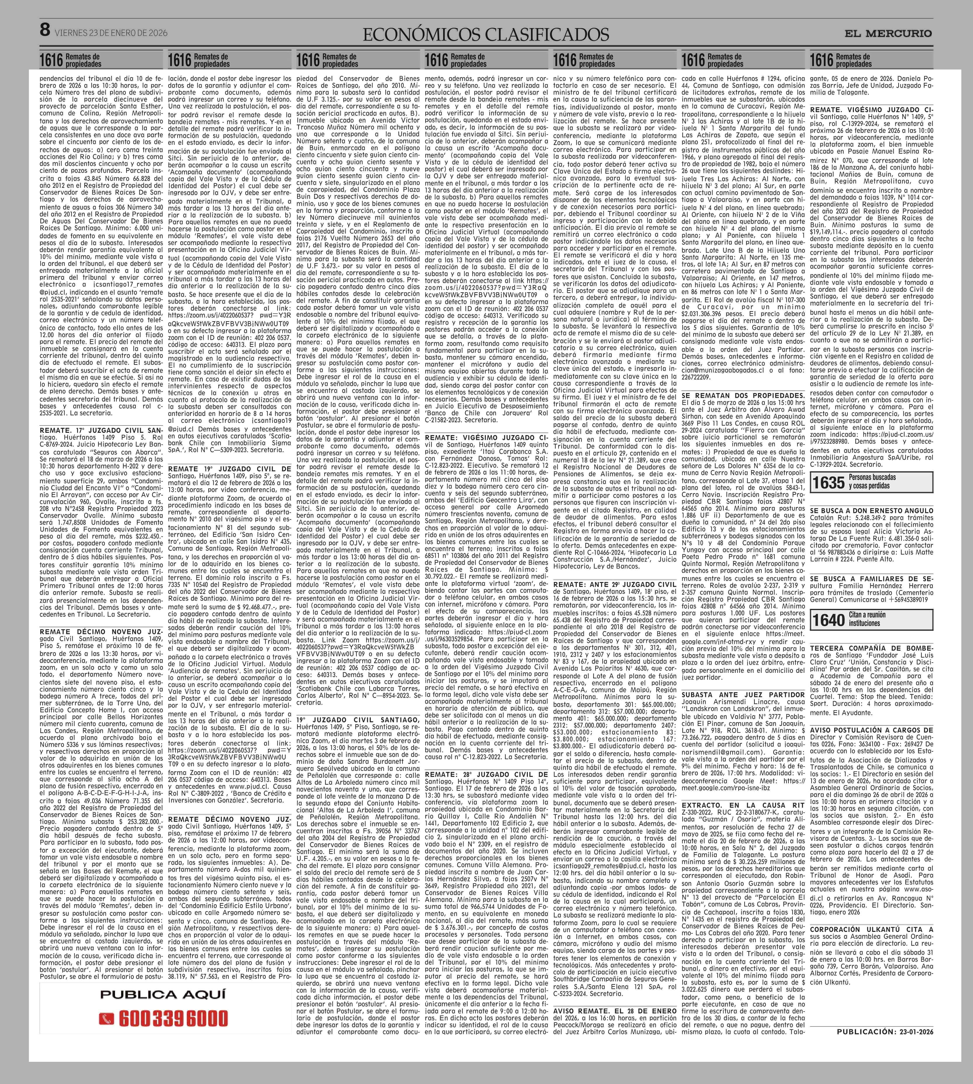Fecha: 23-01-2026 Sector: Remates Región: Región Metropolitana de Santiago