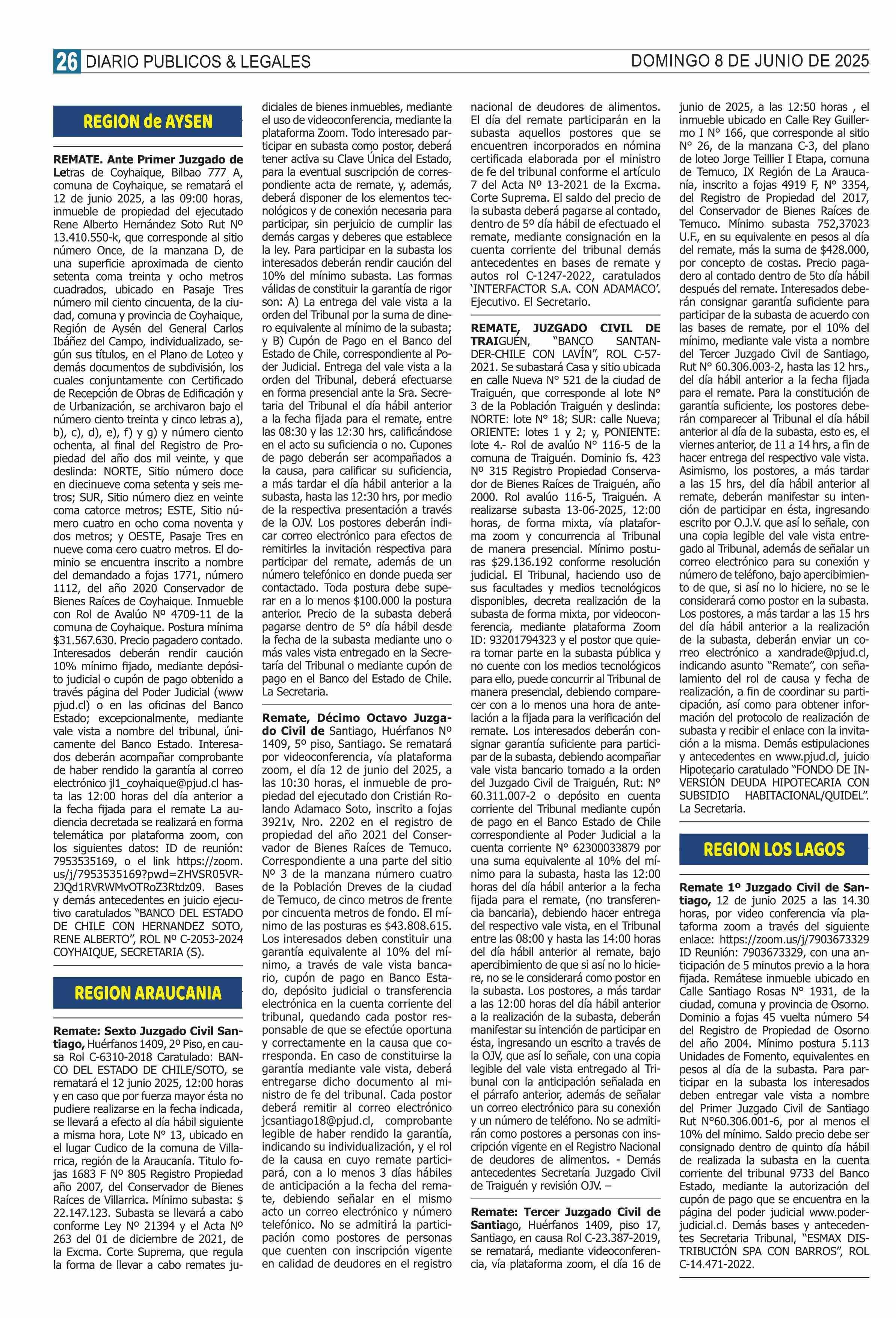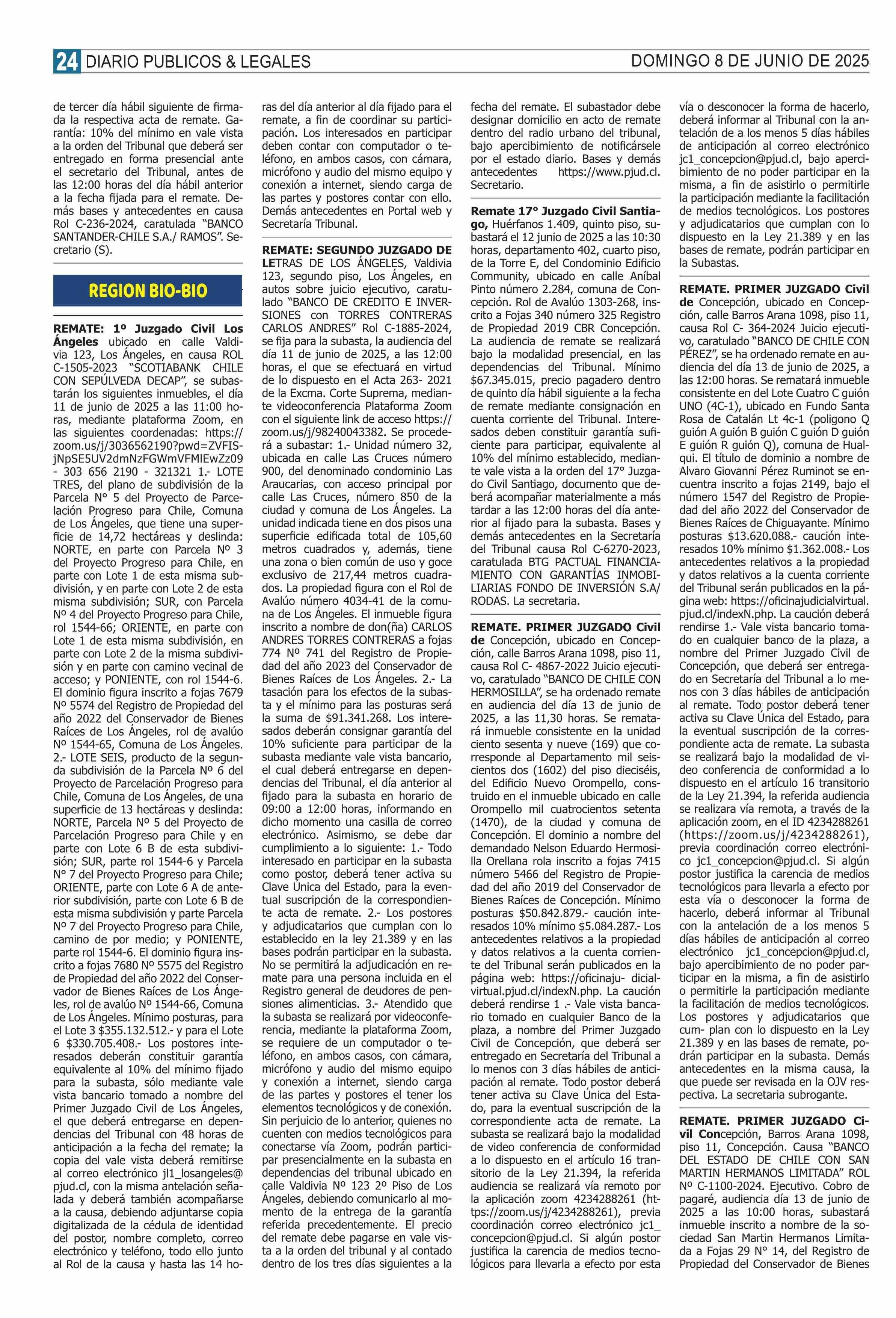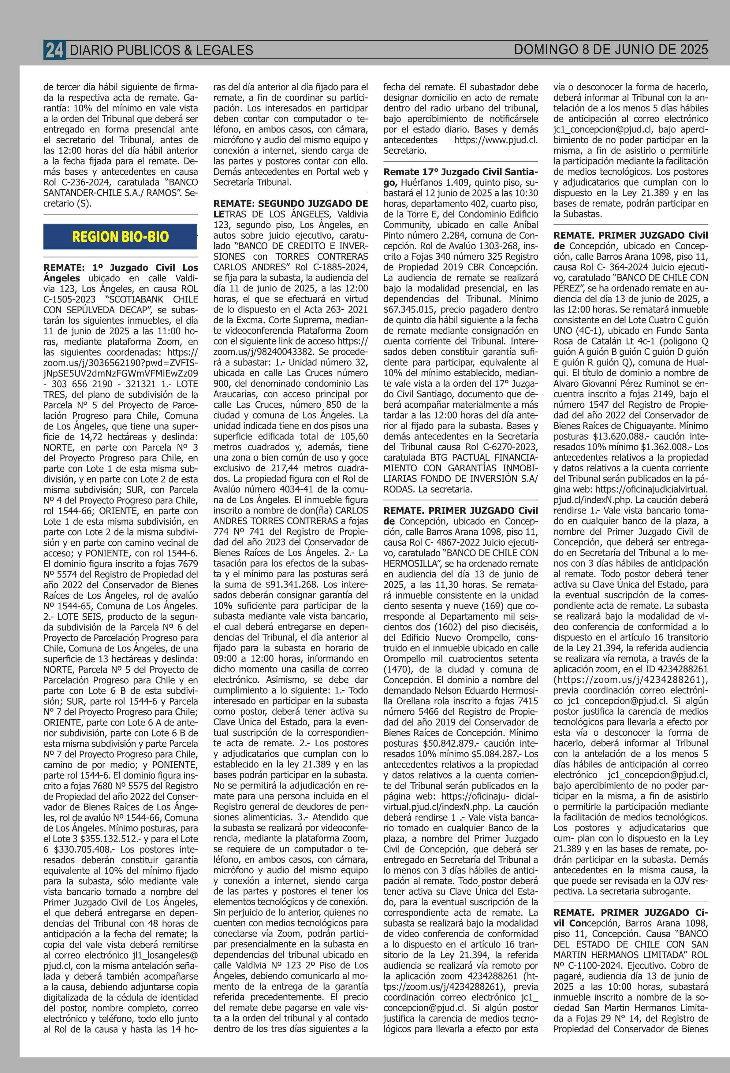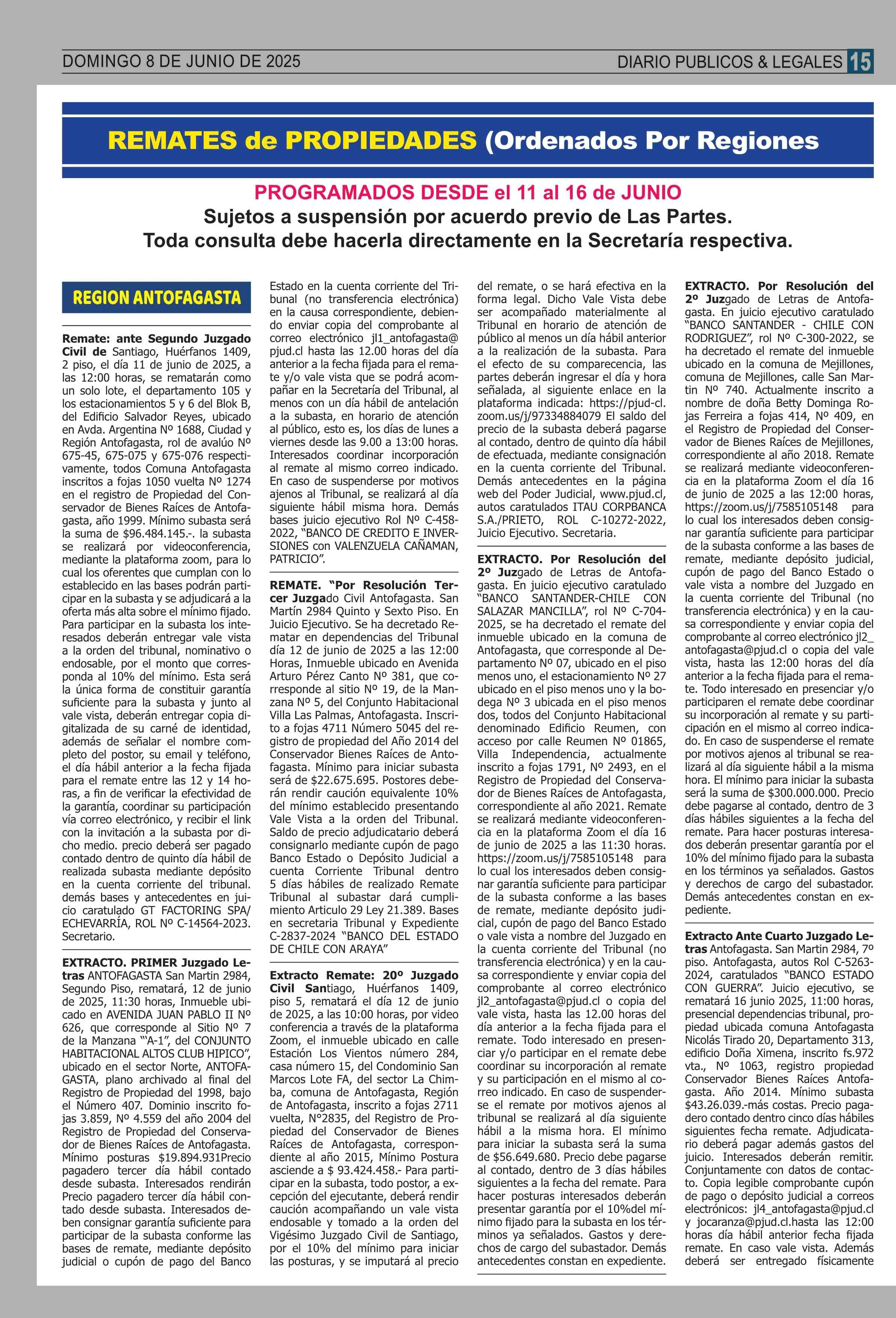 REMATES: REMATES de PROPIEDADES (Ordenados Por Regiones 08-06-2025 P&L Públicos y Legales |