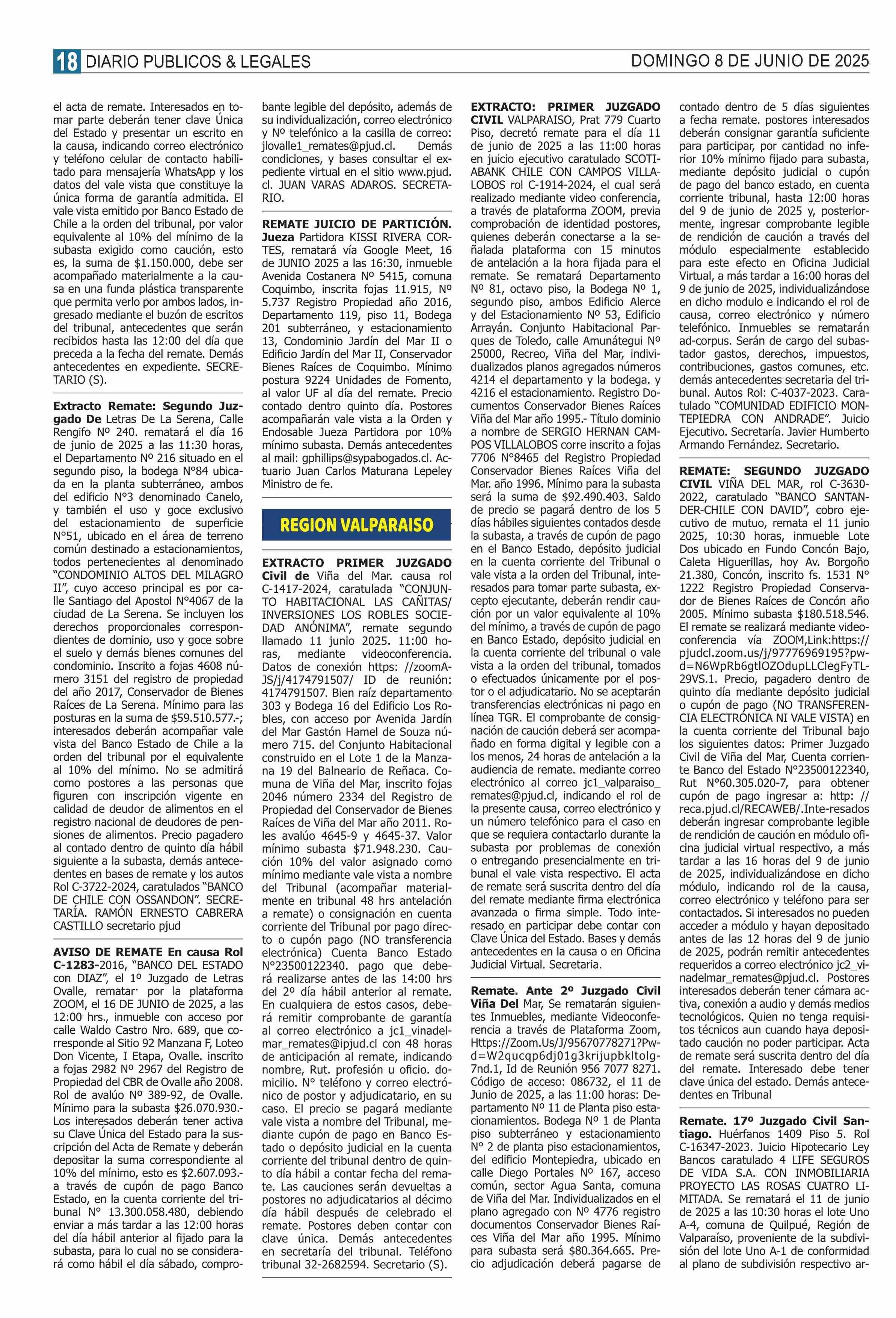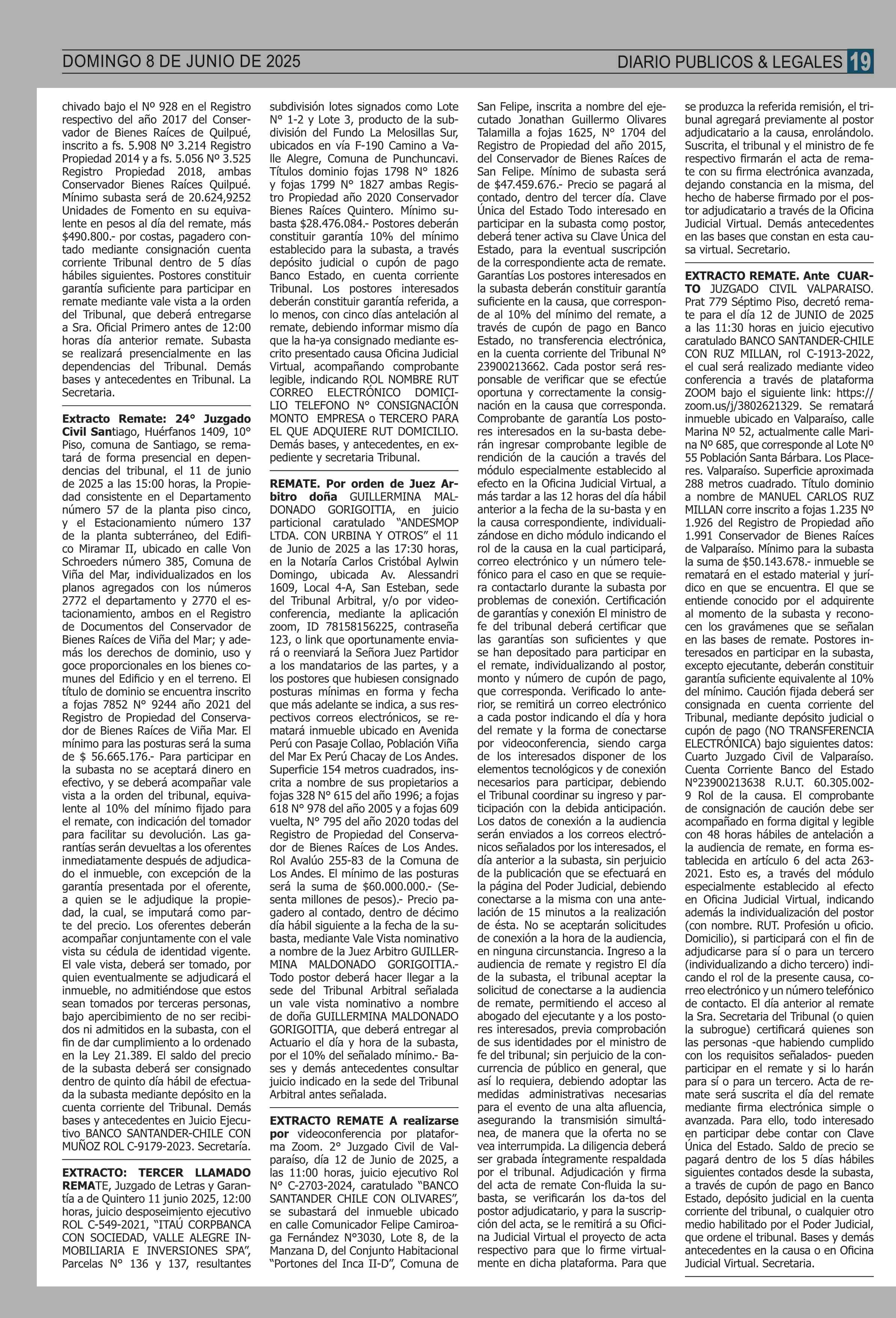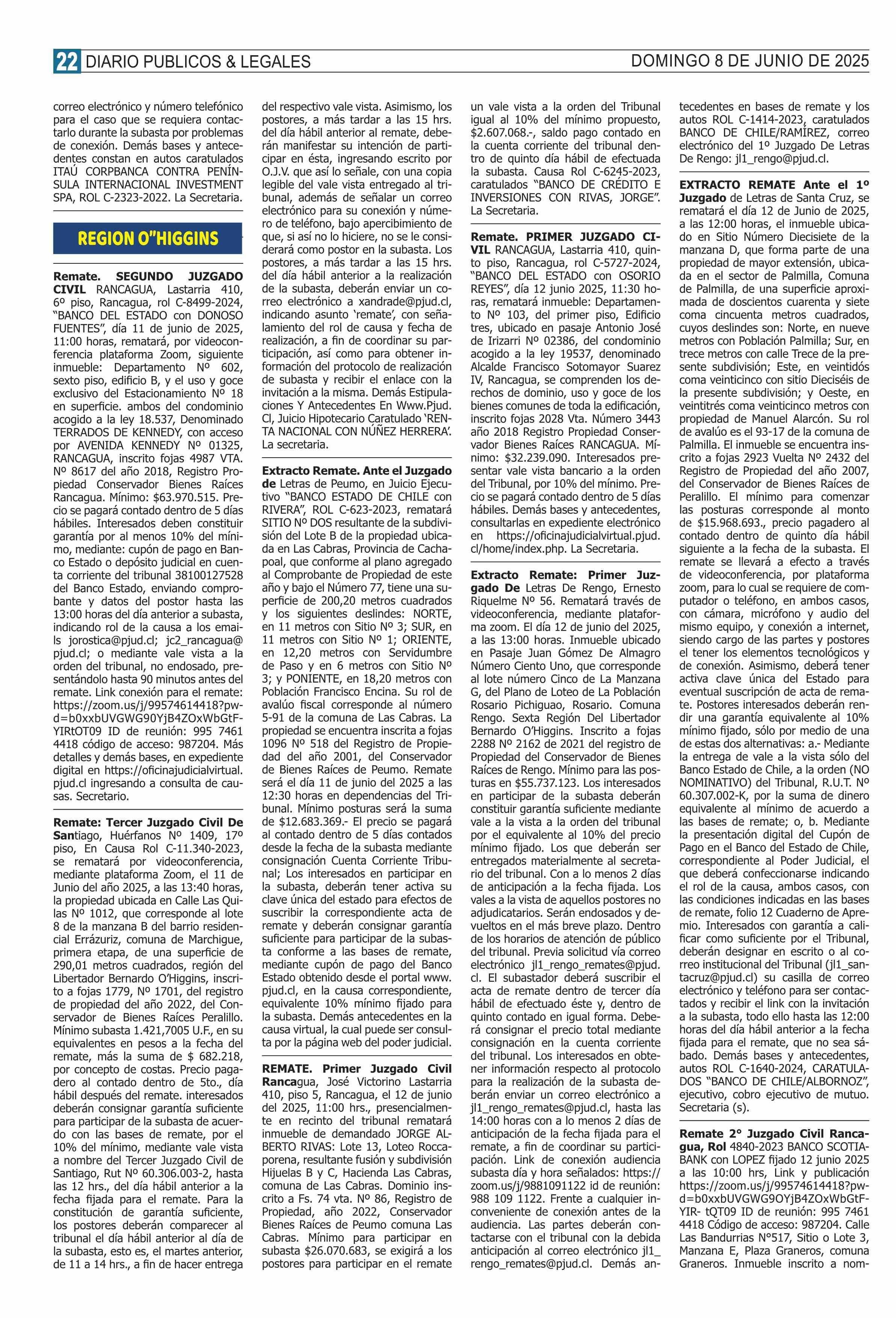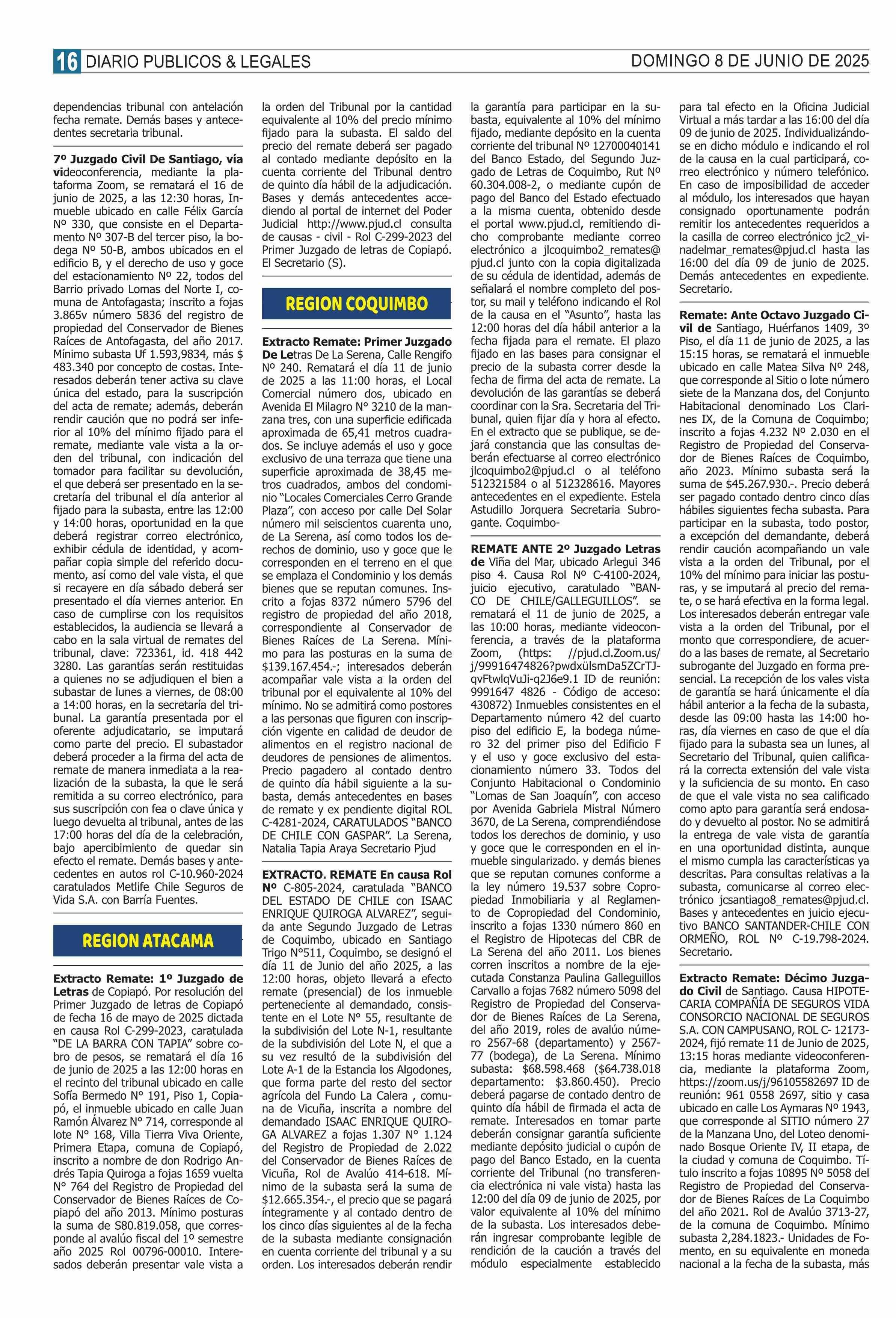 REMATES: REMATES de PROPIEDADES (Ordenados Por Regiones 08-06-2025 P&L Públicos y Legales |