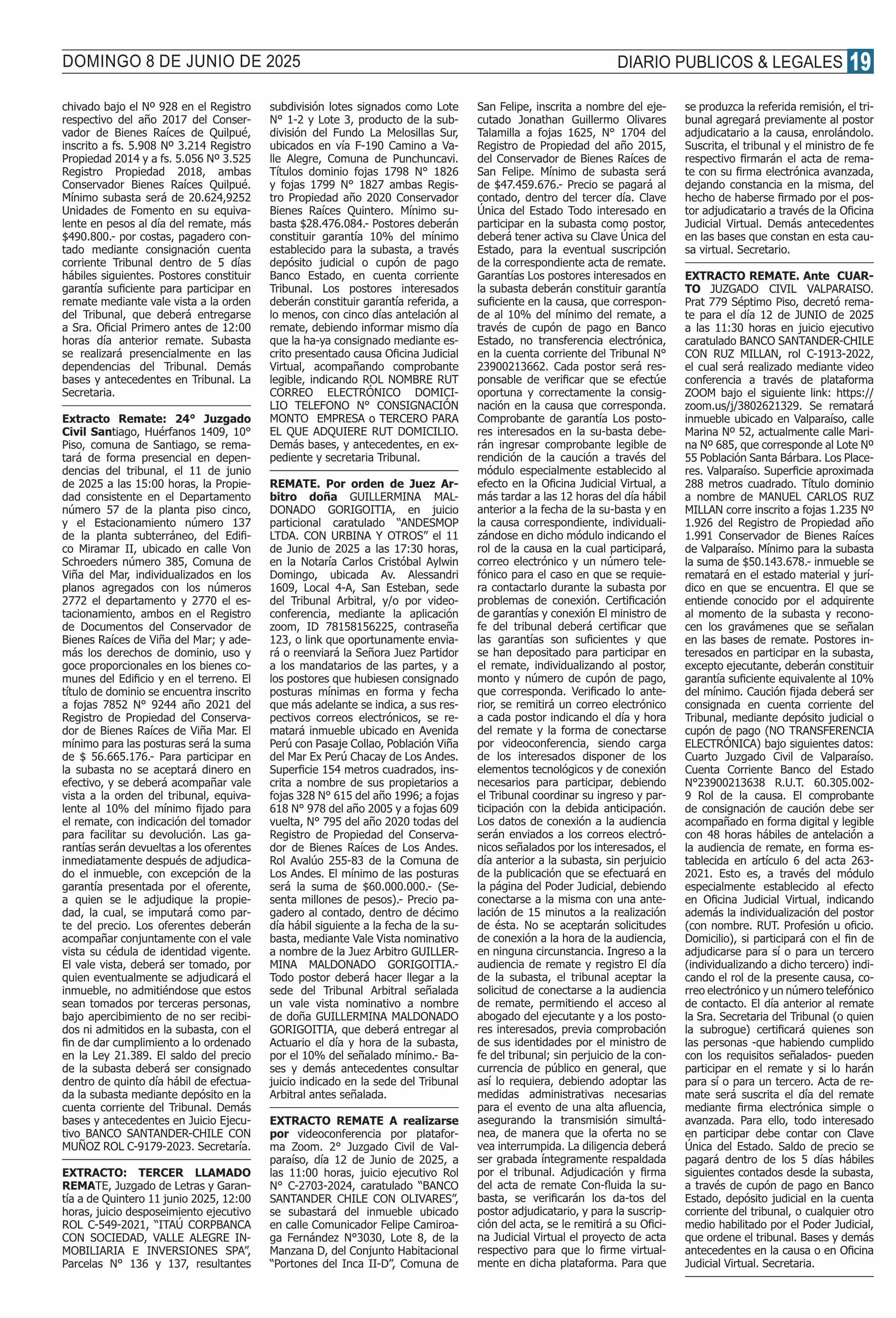 | Fecha: | 08-06-2025 | Sector: | Remates | Región: | Región Metropolitana de Santiago |