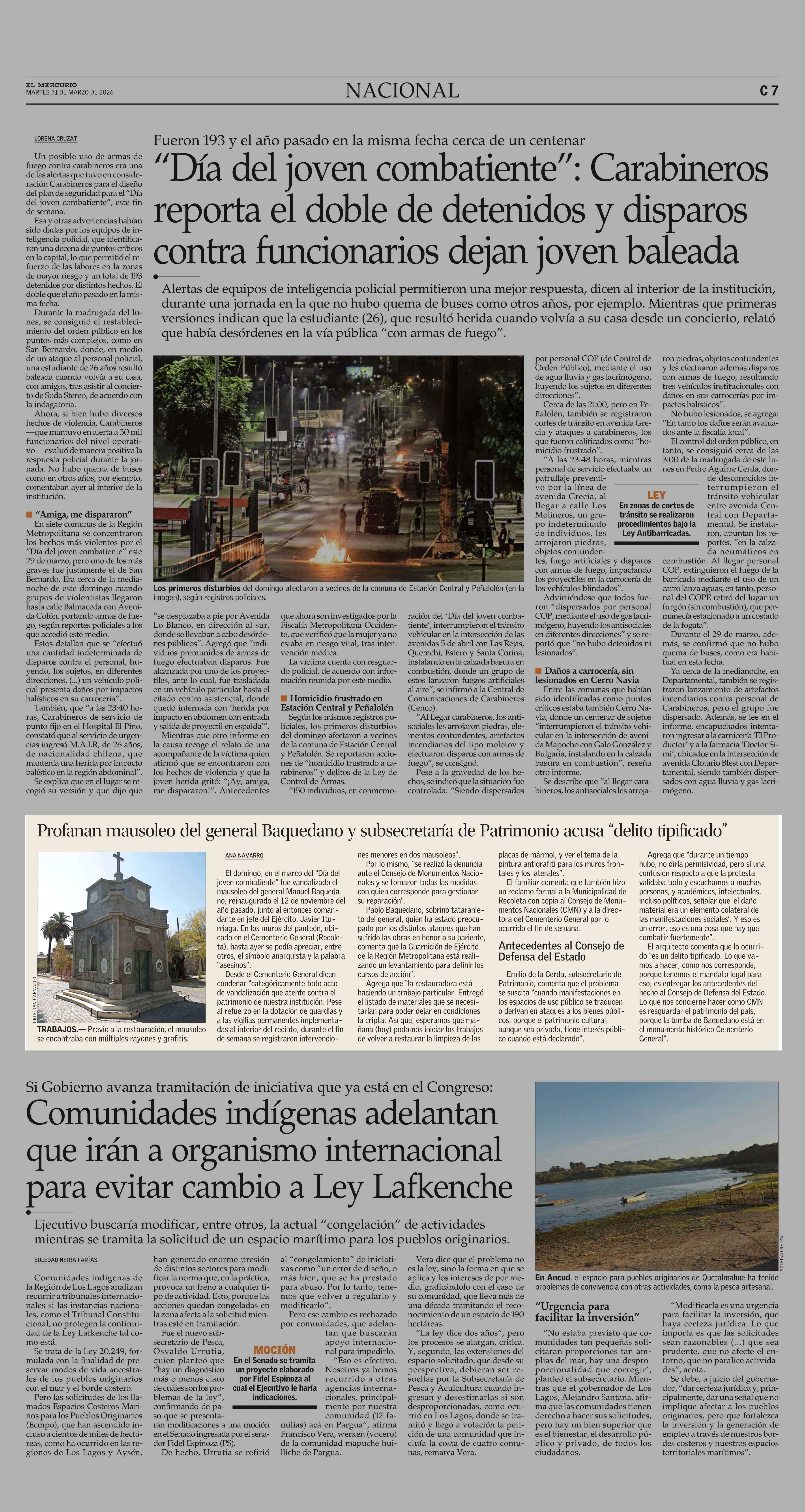 Profanan mausoleo del general Baquedano y subsecretaría de Patrimonio acusa “delito tipificado” 31-03-2026 El Mercurio |
