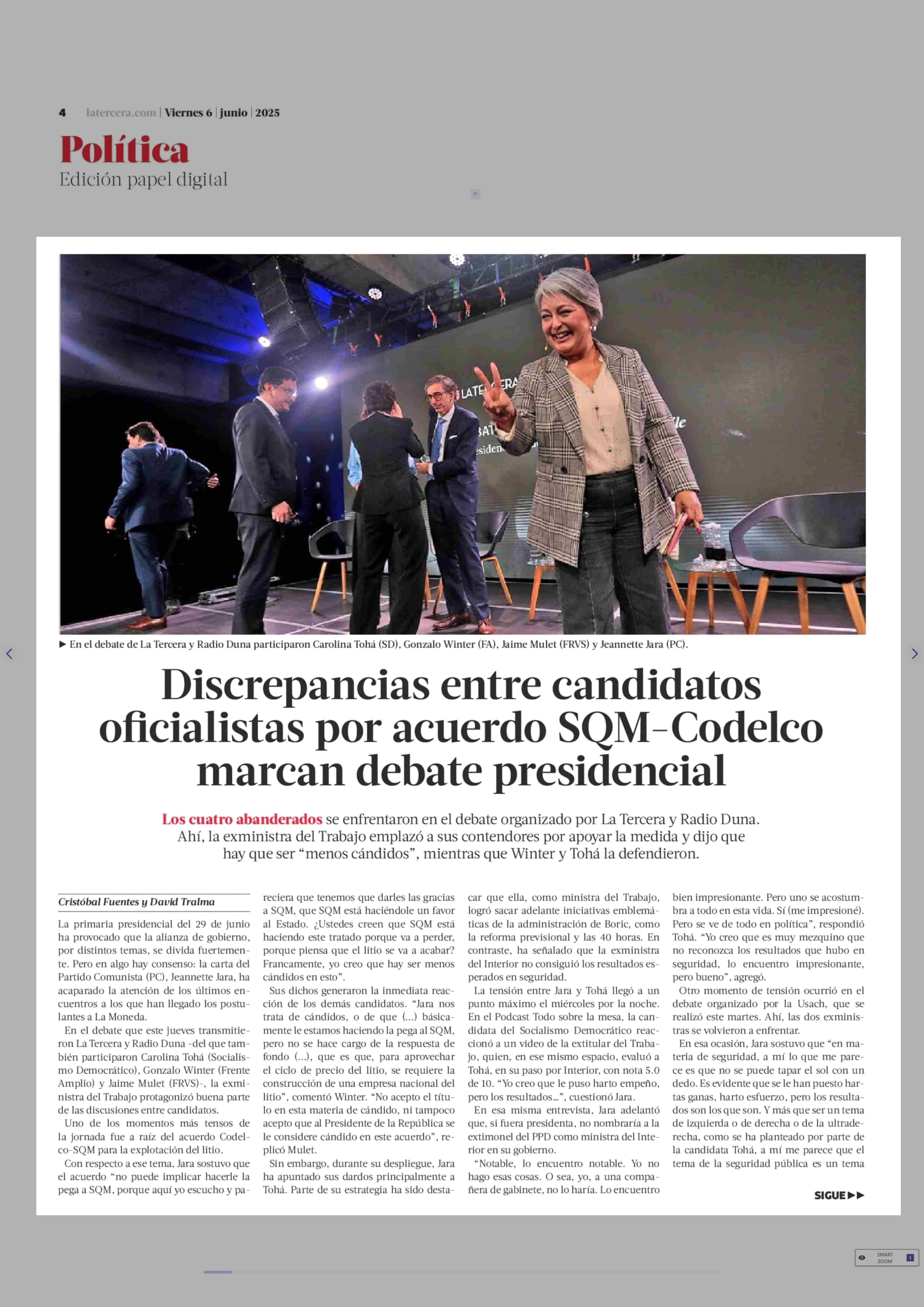 Fuente: La Tercera (La Tercera) Página(s): 4-5