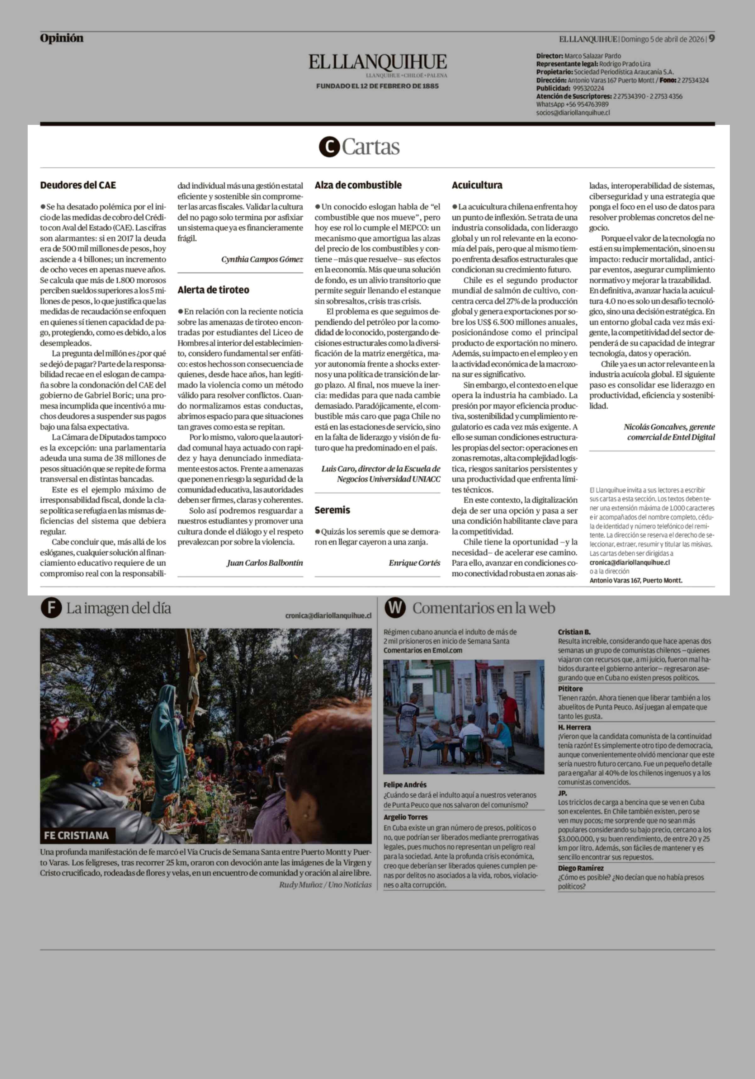 Fecha: 05-04-2026 Sector: Cartas Región: Región de Los Lagos