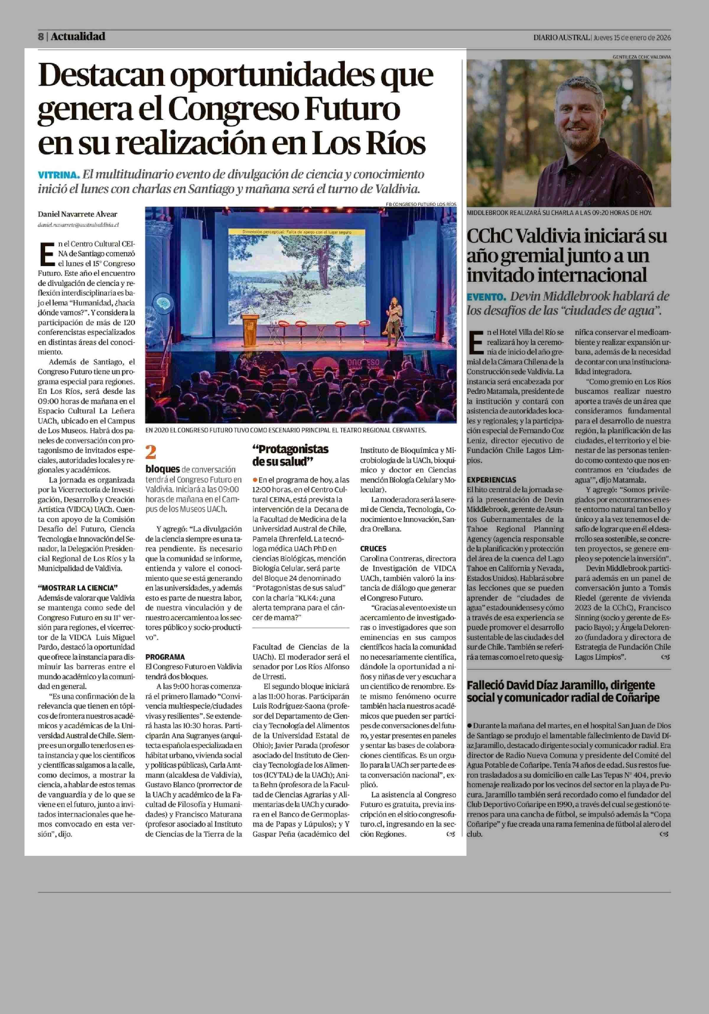 Destacan oportunidades que genera el Congreso Futuro en su realización en Los Ríos 15-01-2026 Diario Austral Región de Los Ríos |