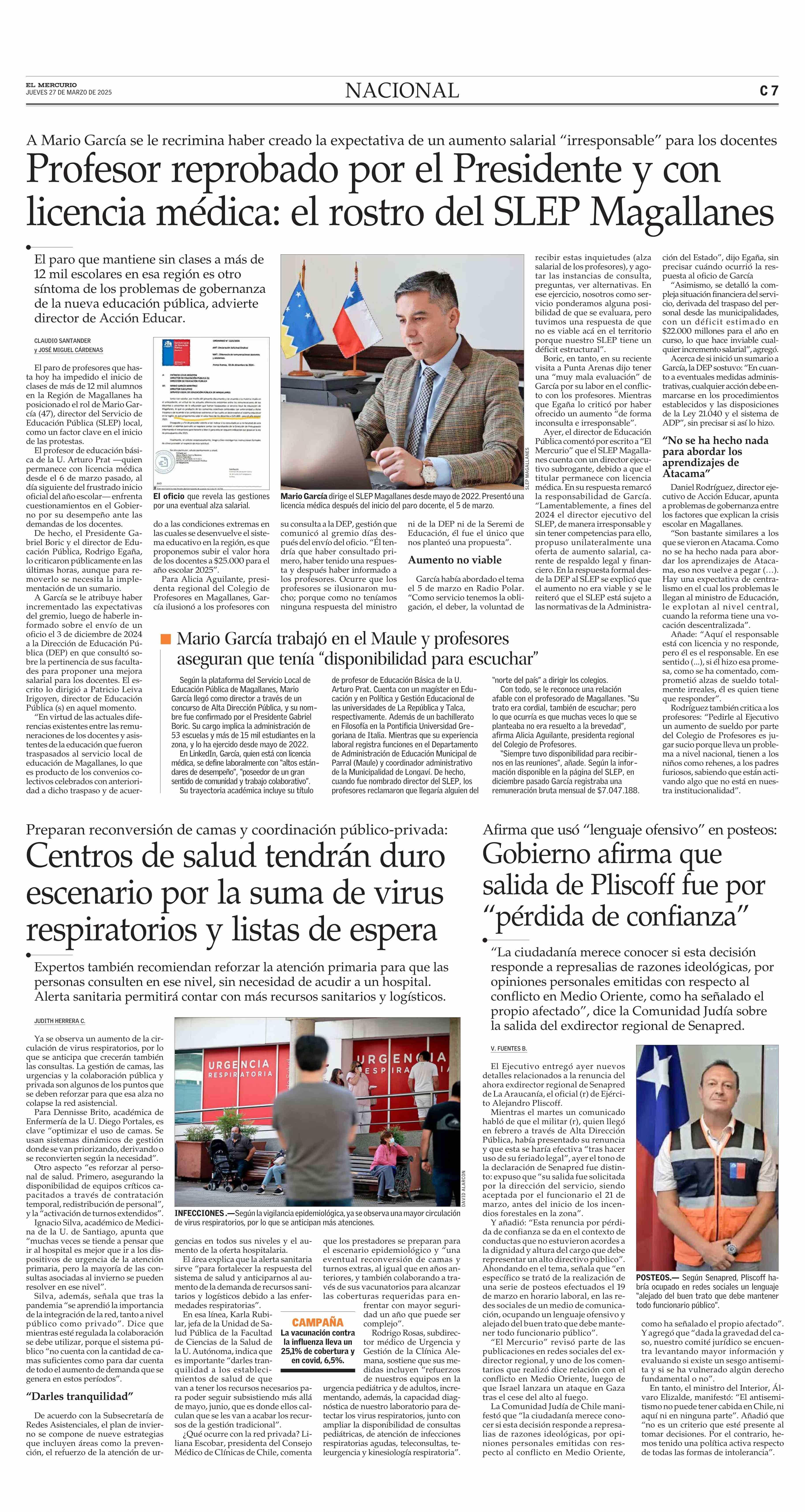 Centros de salud tendrán duro escenario por la suma de virus respiratorios y listas de espera 27-03-2025 El Mercurio |