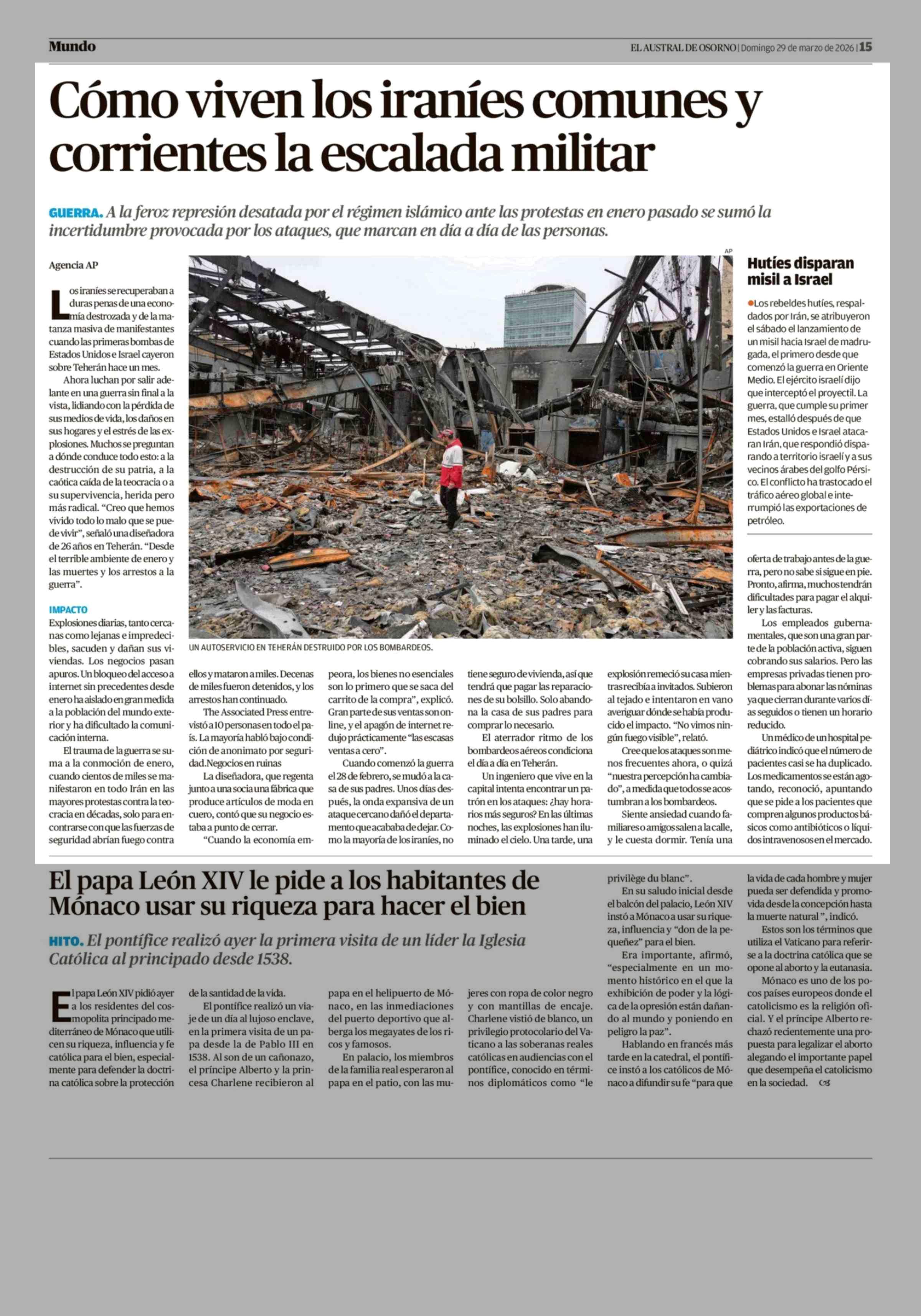 Cómo viven los iraníes comunes y corrientes la escalada militar 29-03-2026 El Austral de Osorno |