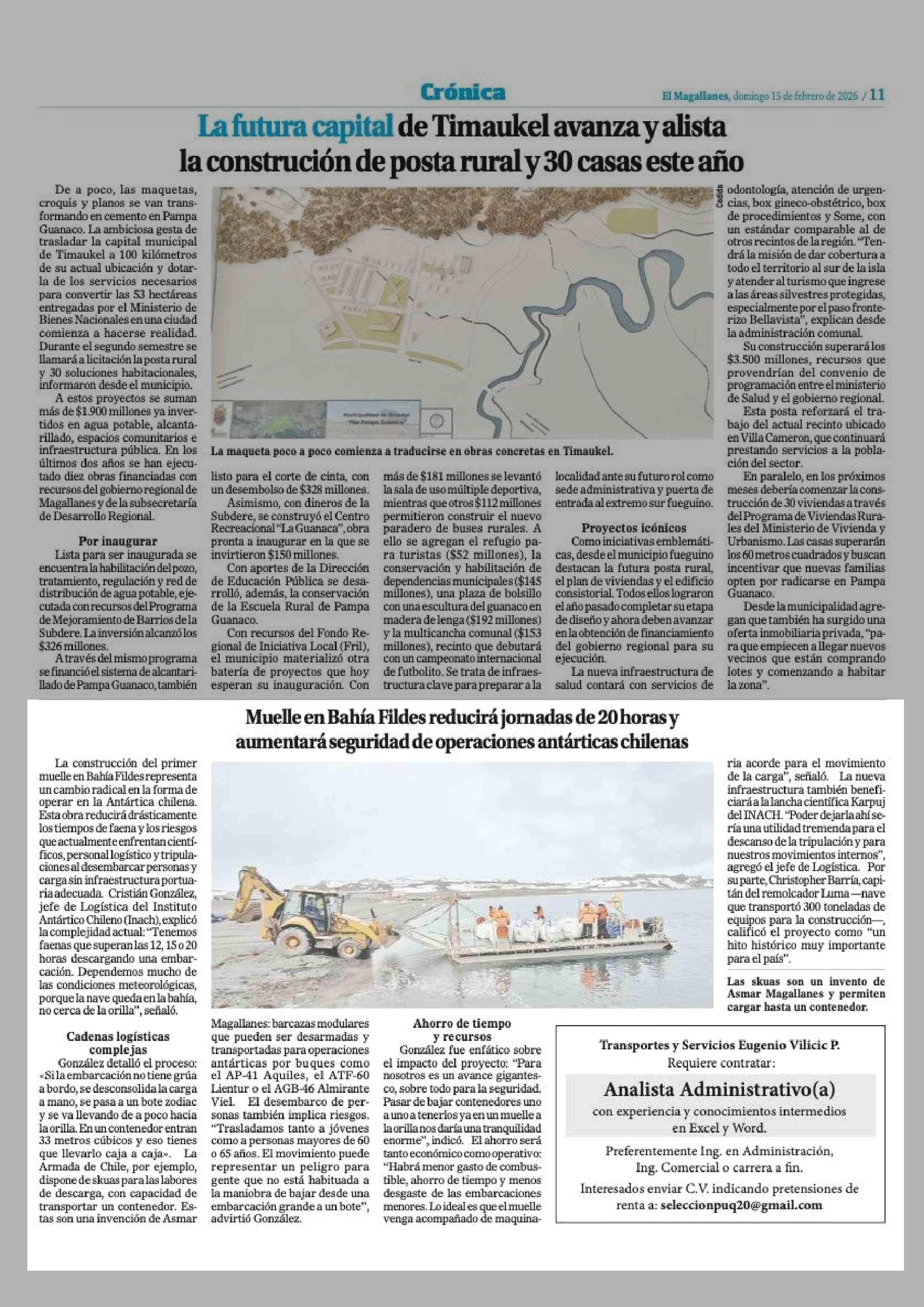 | Fecha: | 15-02-2026 | Sector: | Noticia general | Región: | Región de Magallanes y de la Antártica Chilena |