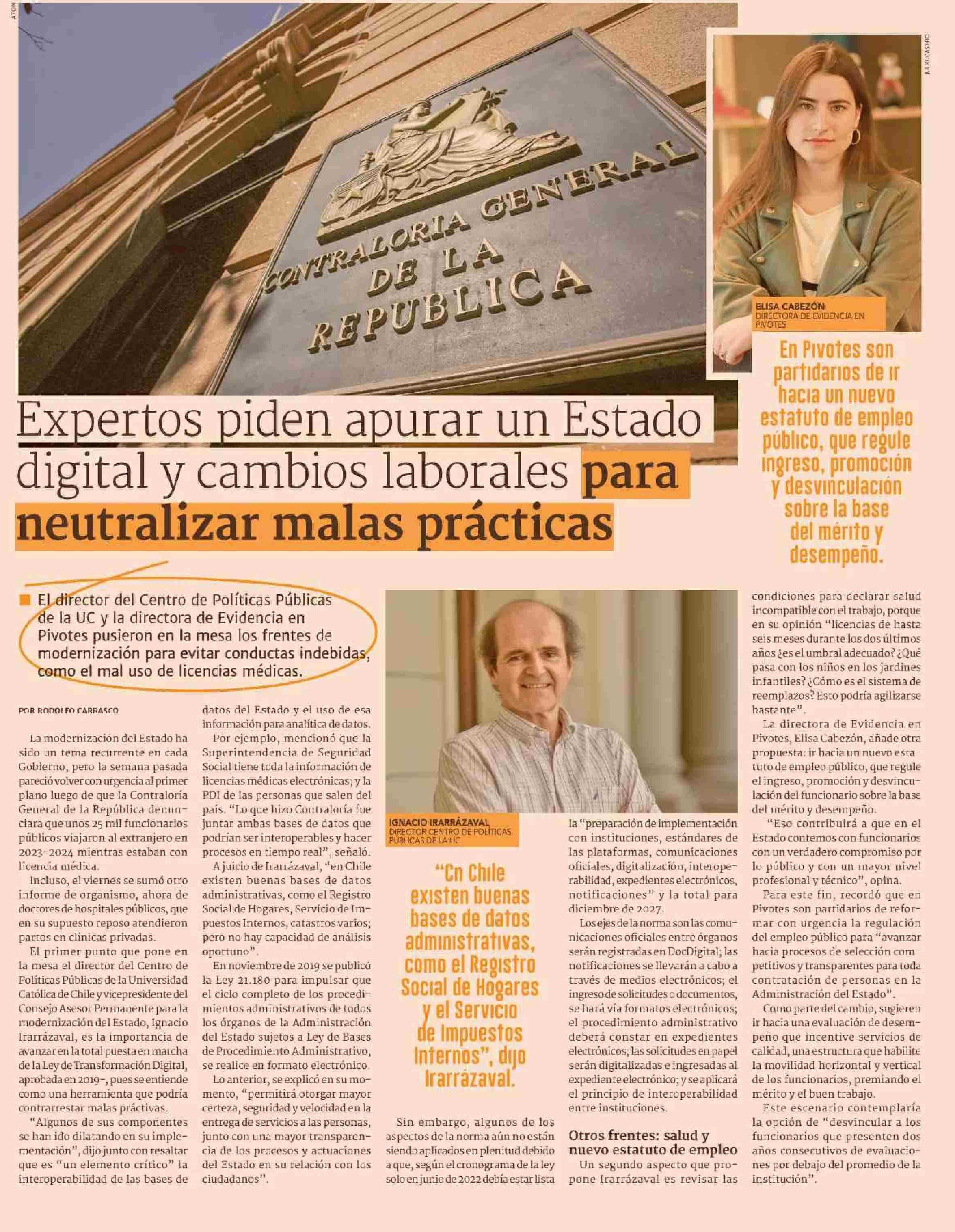 Expertos piden apurar un Estado digital y cambios laborales para neutralizar malas practicas 26-05-2025 Diario Financiero |