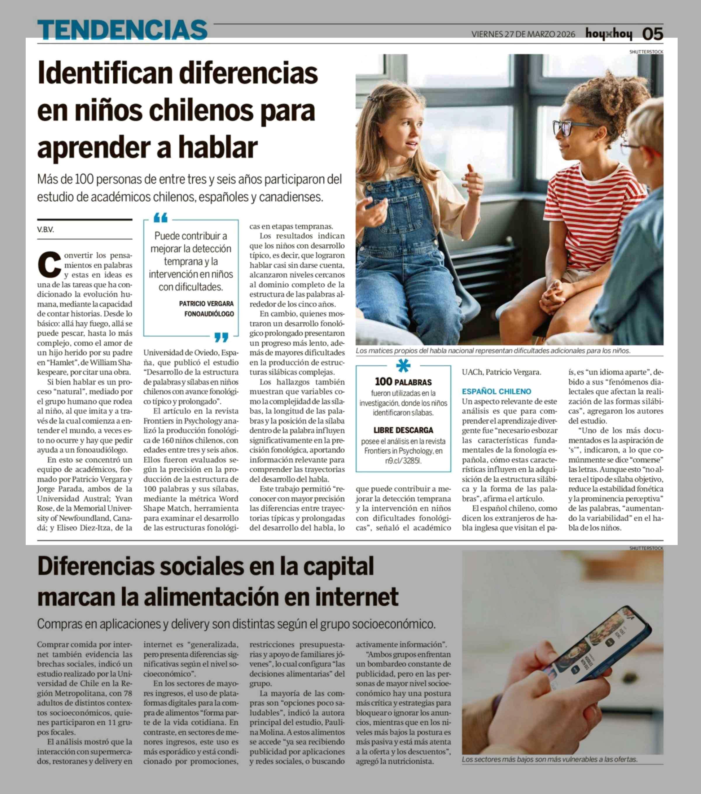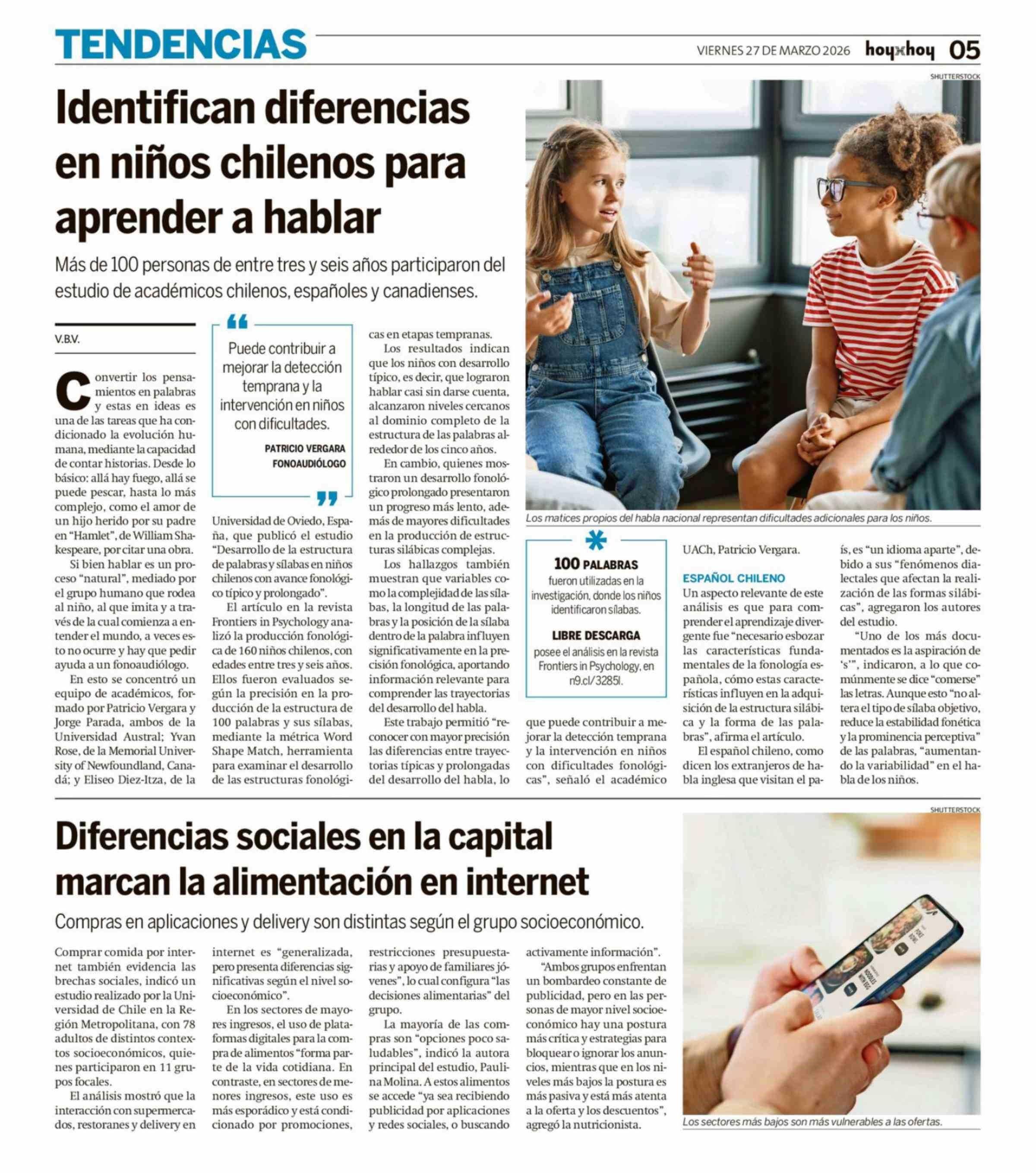 Identifican diferencias en niños chilenos para aprender a hablar 27-03-2026 Hoy x Hoy |