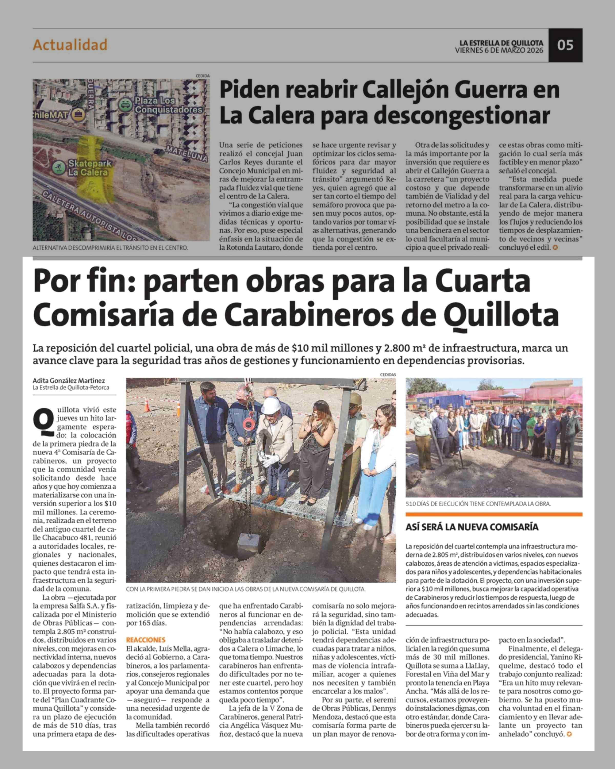 Por fin: parten obras para la Cuarta Comisaría de Carabineros de Quillota 06-03-2026 La Estrella de Quillota |