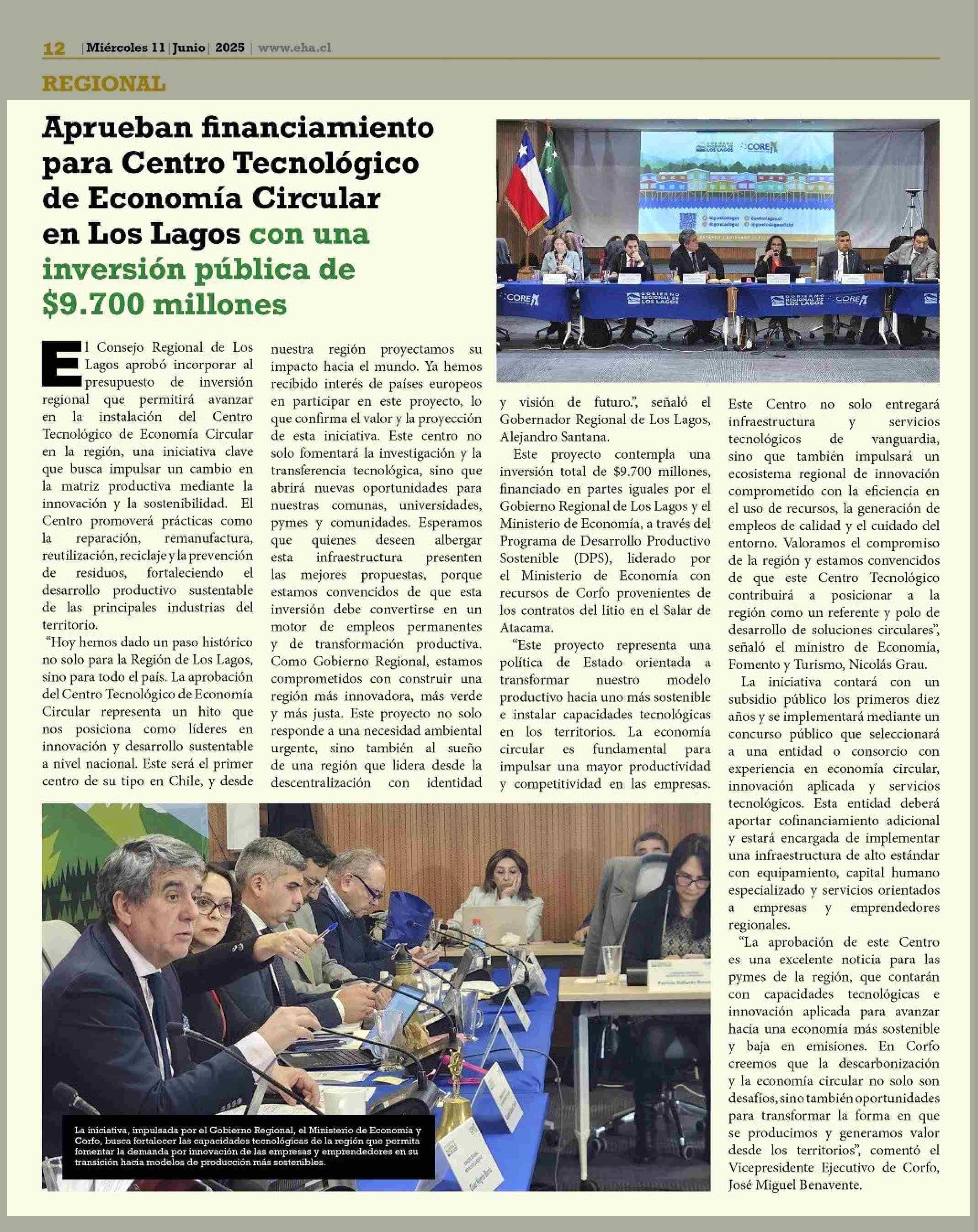 Título: Aprueban financiamiento para Centro Tecnológico de Economía Circular en Los Lagos con una inversión pública de $9.700 millones