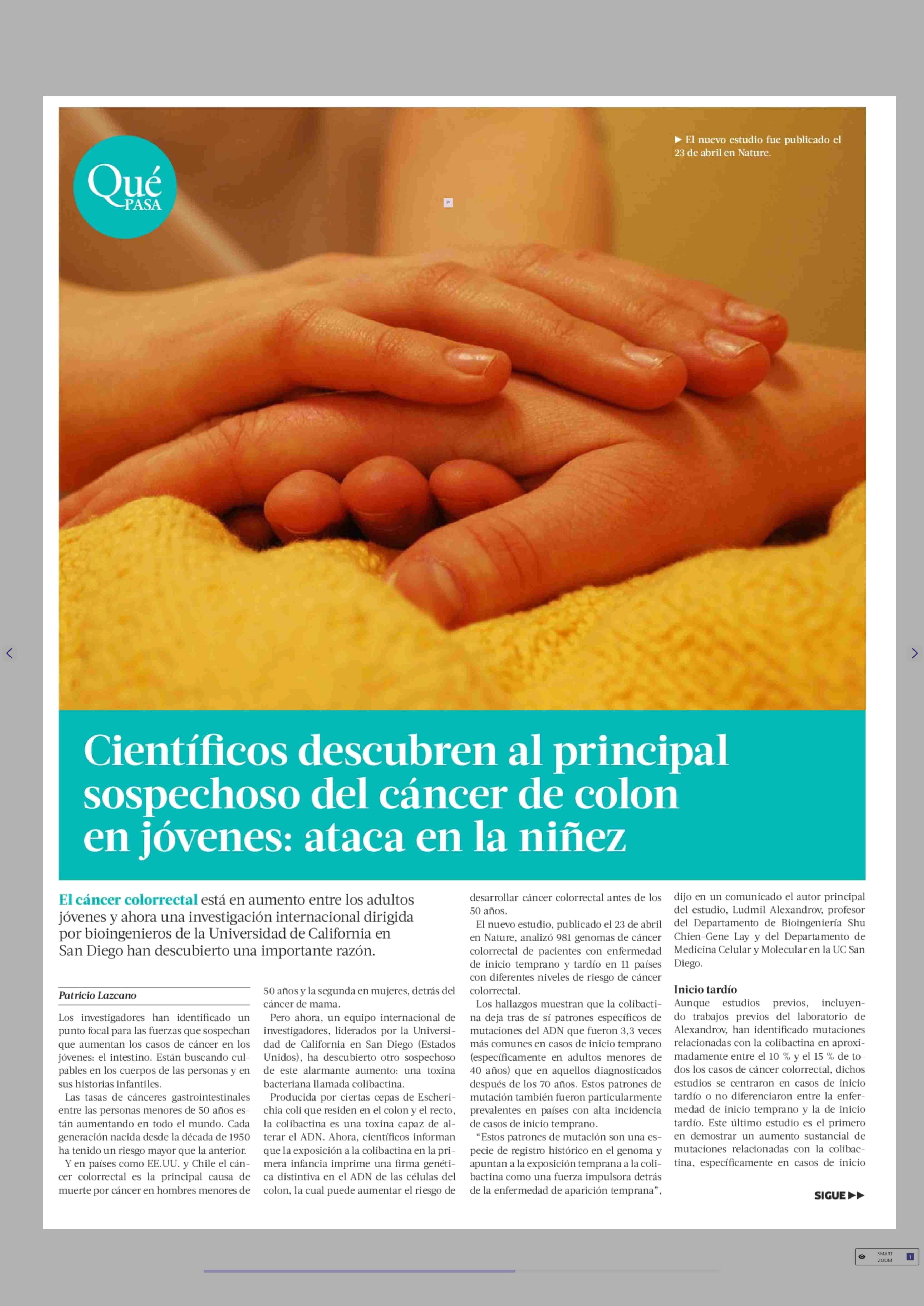 Título: Científicos descubren al principal sospechoso del cáncer de colon en jóvenes: ataca en la niñez