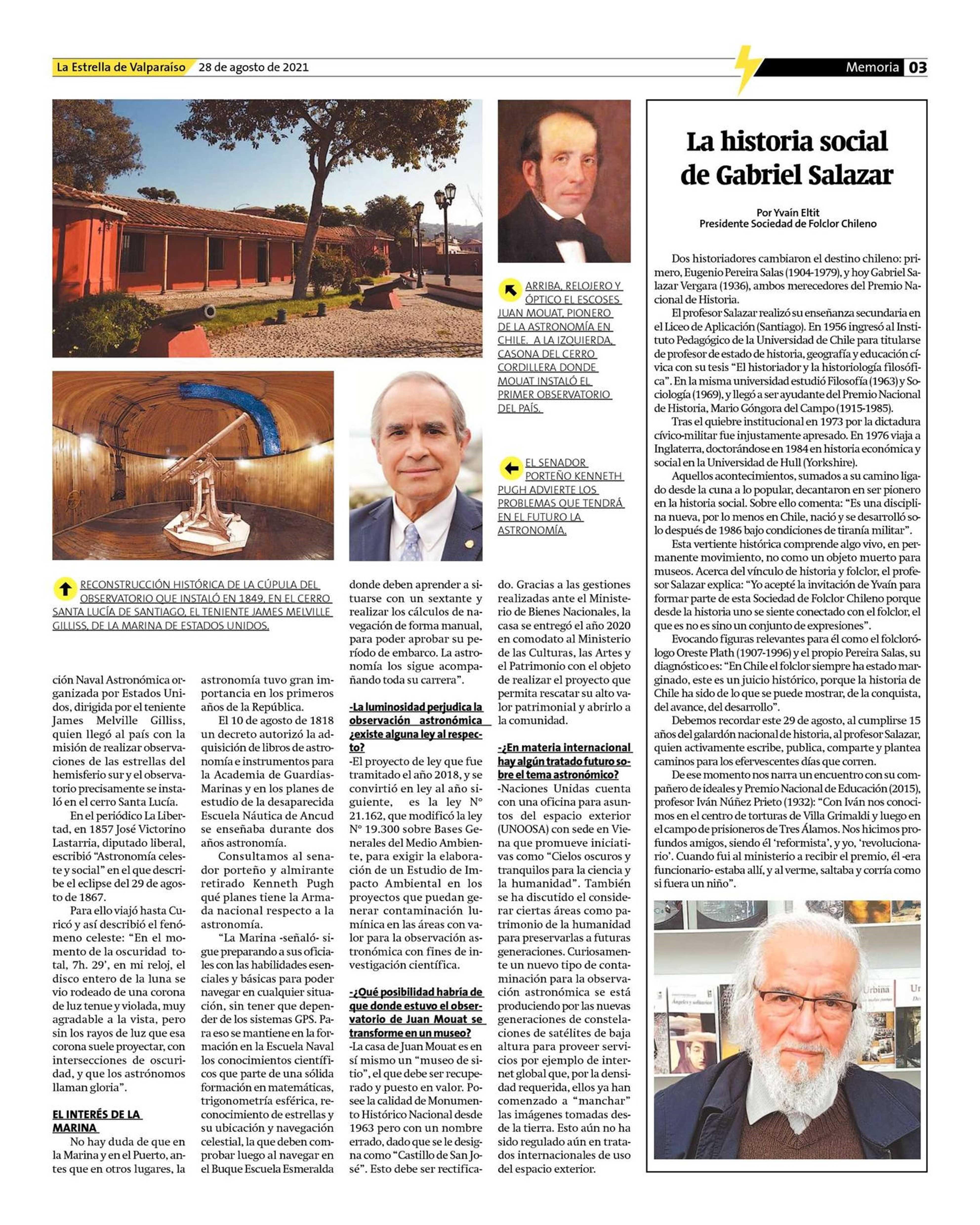 Valparaiso, cuna de la astronomía nacional 28-08-2021 La Estrella de Valparaíso |