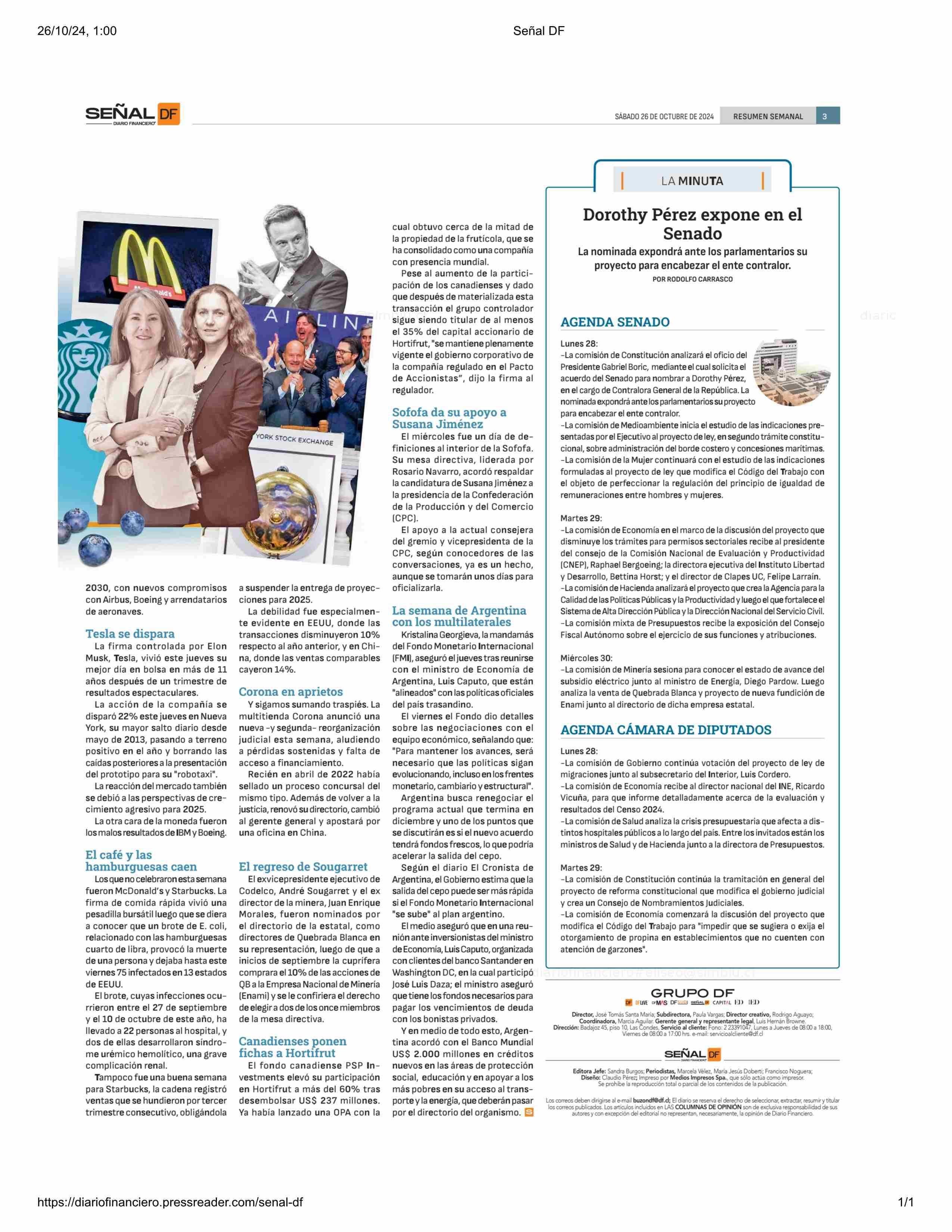Dorothy Pérez expone en el Senado 26-10-2024 Diario Financiero |