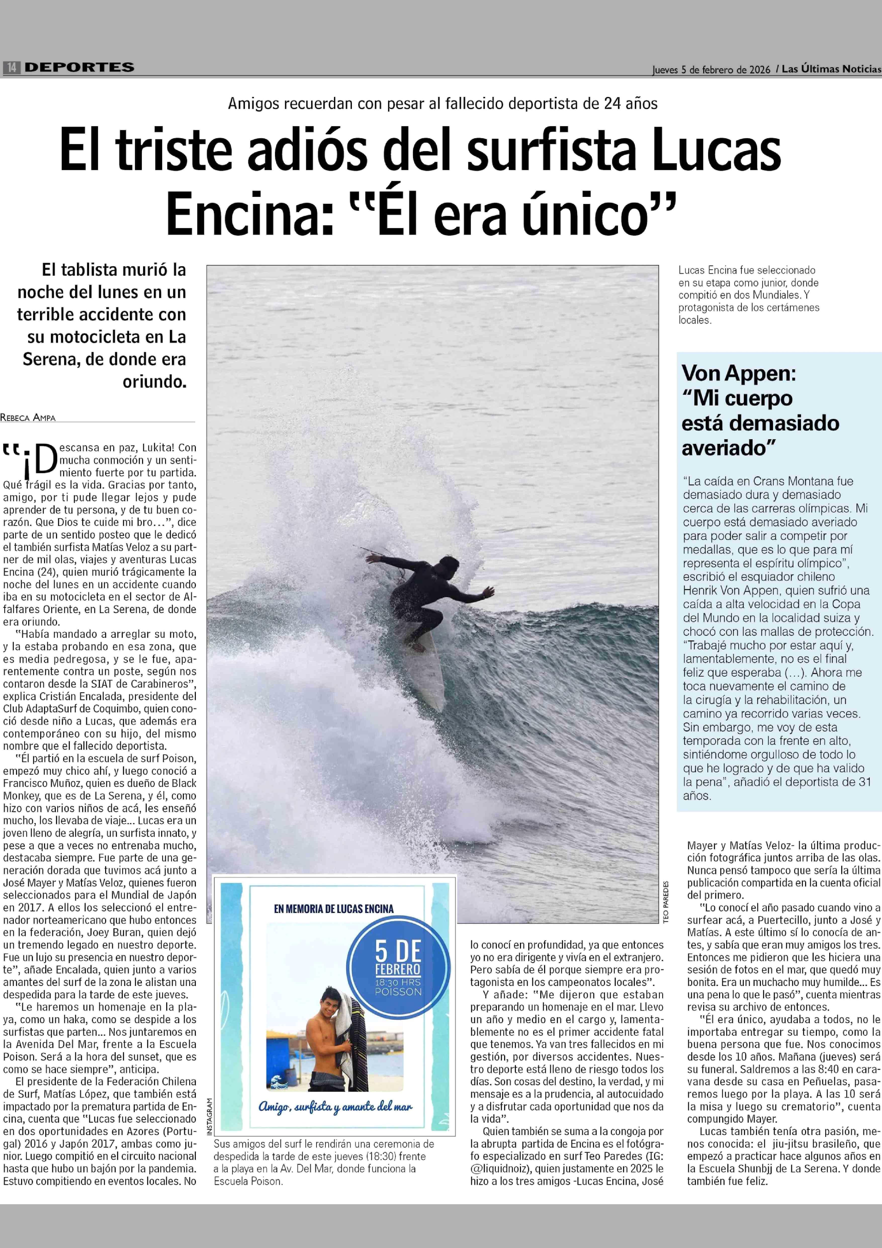 Título: El triste adiós del surfista Lucas Encina: “El era único”