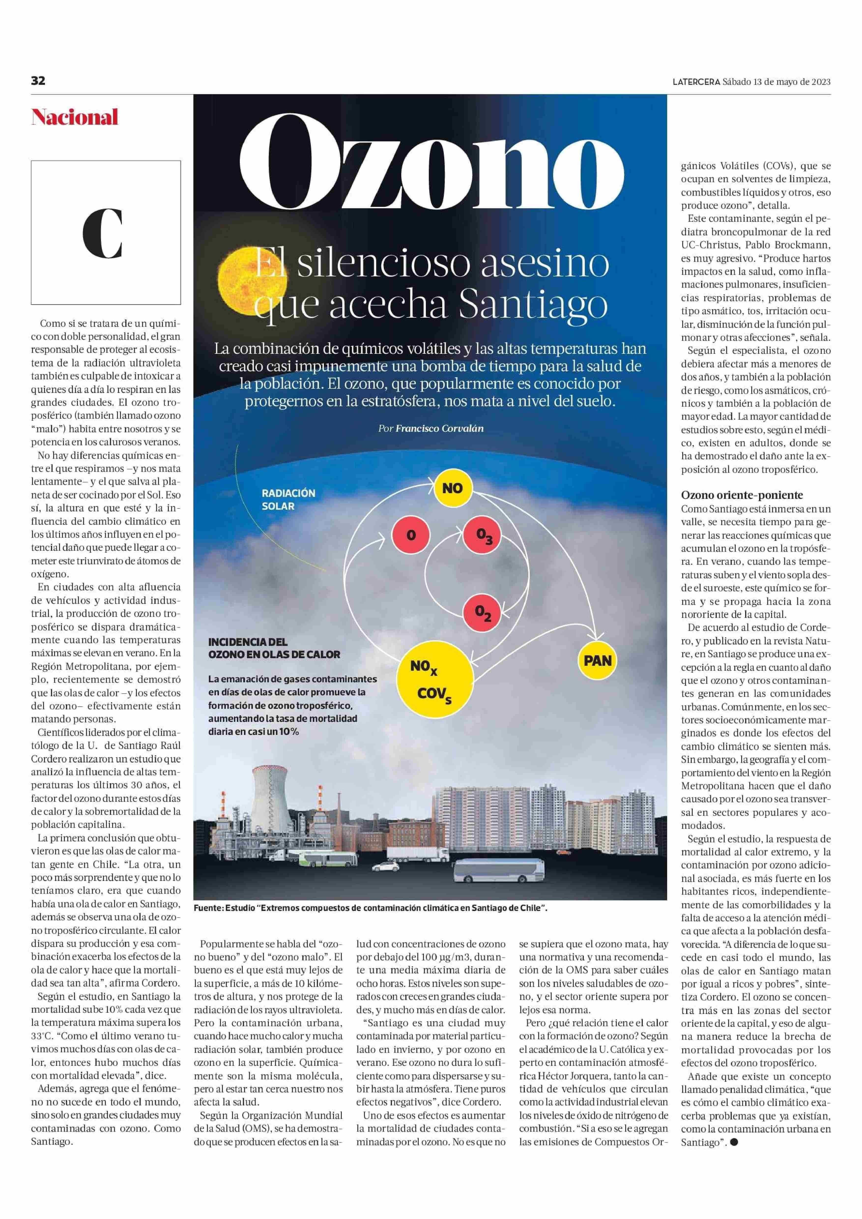Ozono El silencioso asesino que acecha Santiago 13-05-2023 La Tercera |