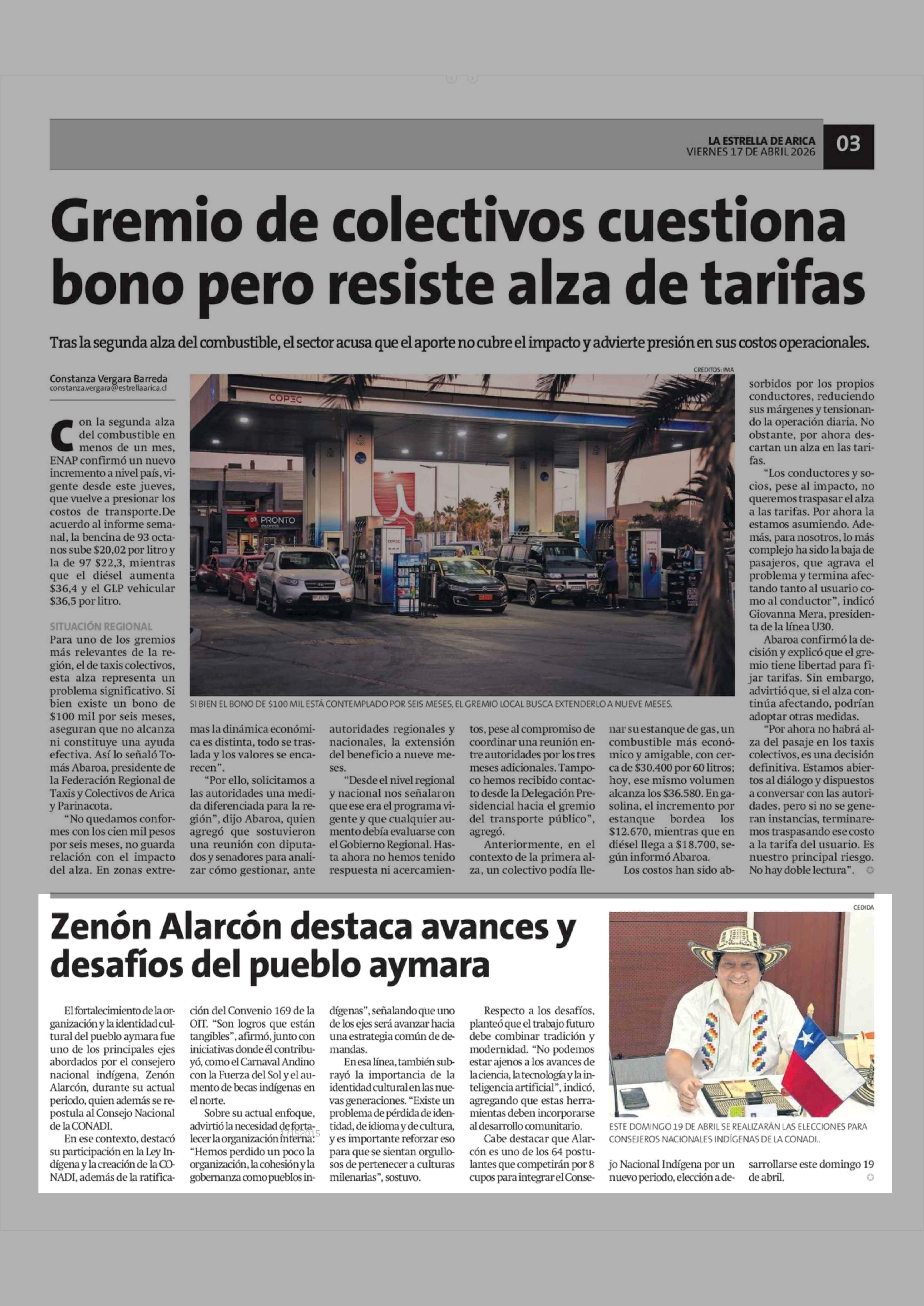 Zenón Alarcón destaca avances y desafíos del pueblo aymara 17-04-2026 La Estrella de Arica |