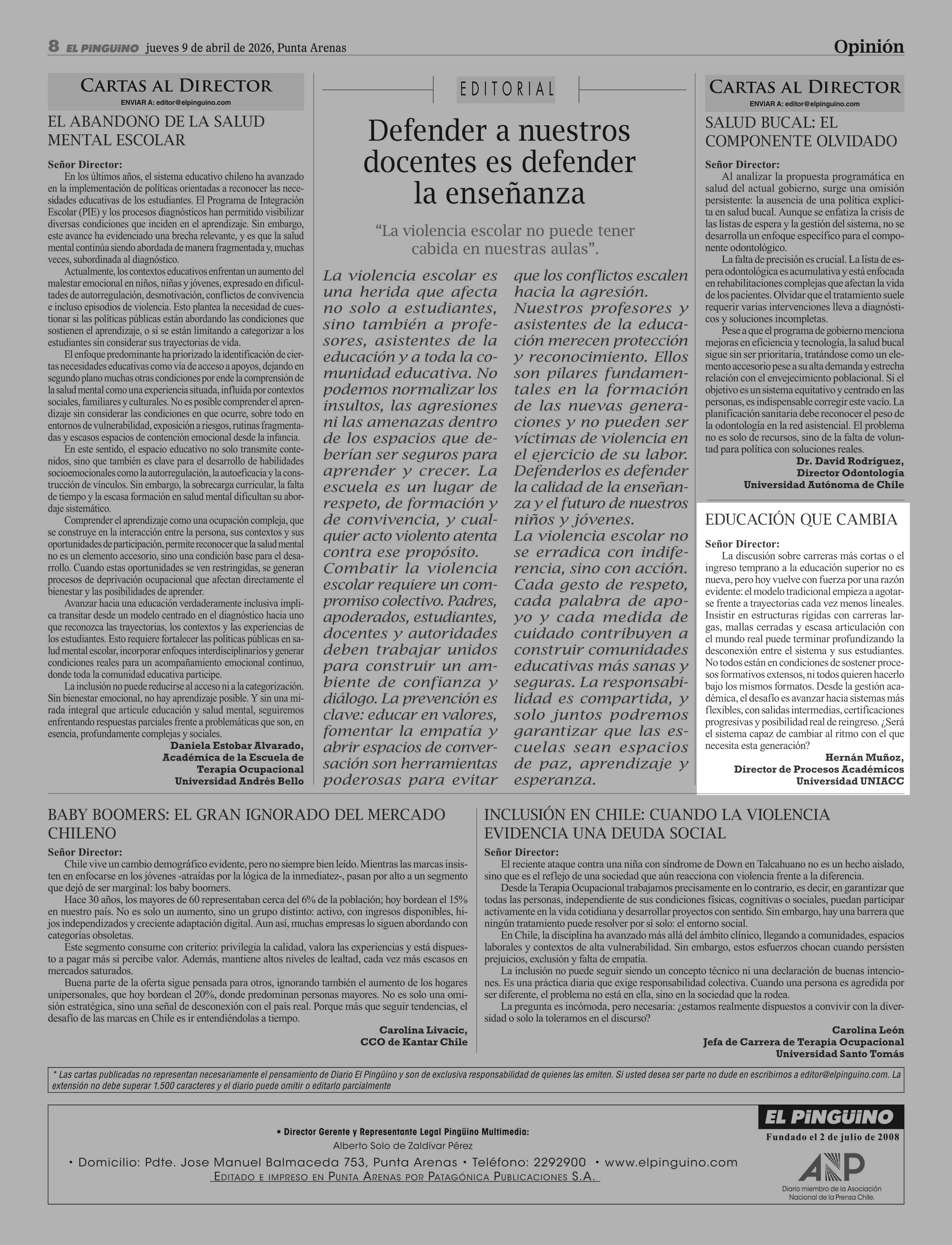 Cartas: Educación que cambia 09-04-2026 El Pingüino |