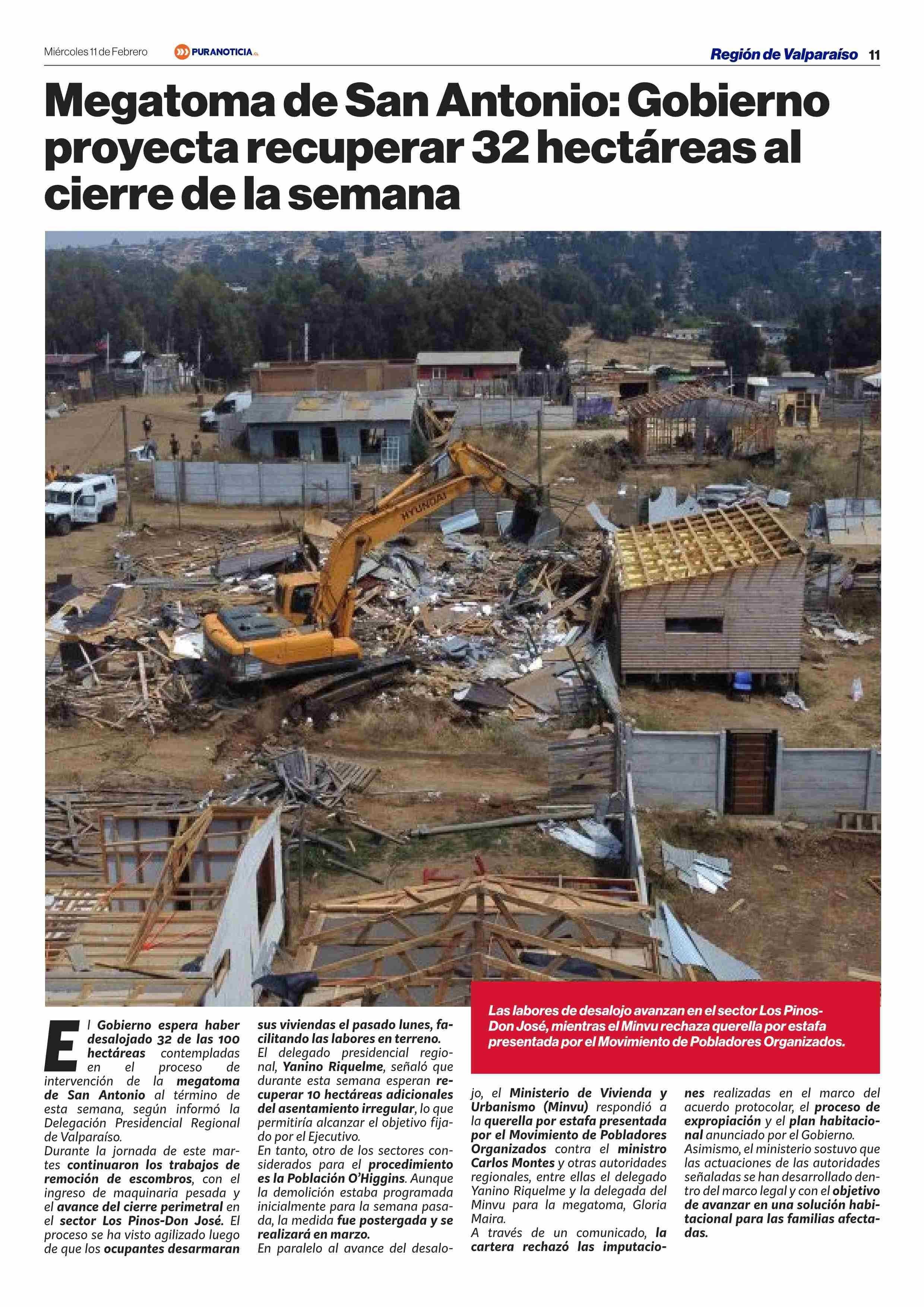 Megatoma de San Antonio: Gobierno proyecta recuperar 32 hectáreas al cierre de la semana 11-02-2026 Puranoticia.cl |