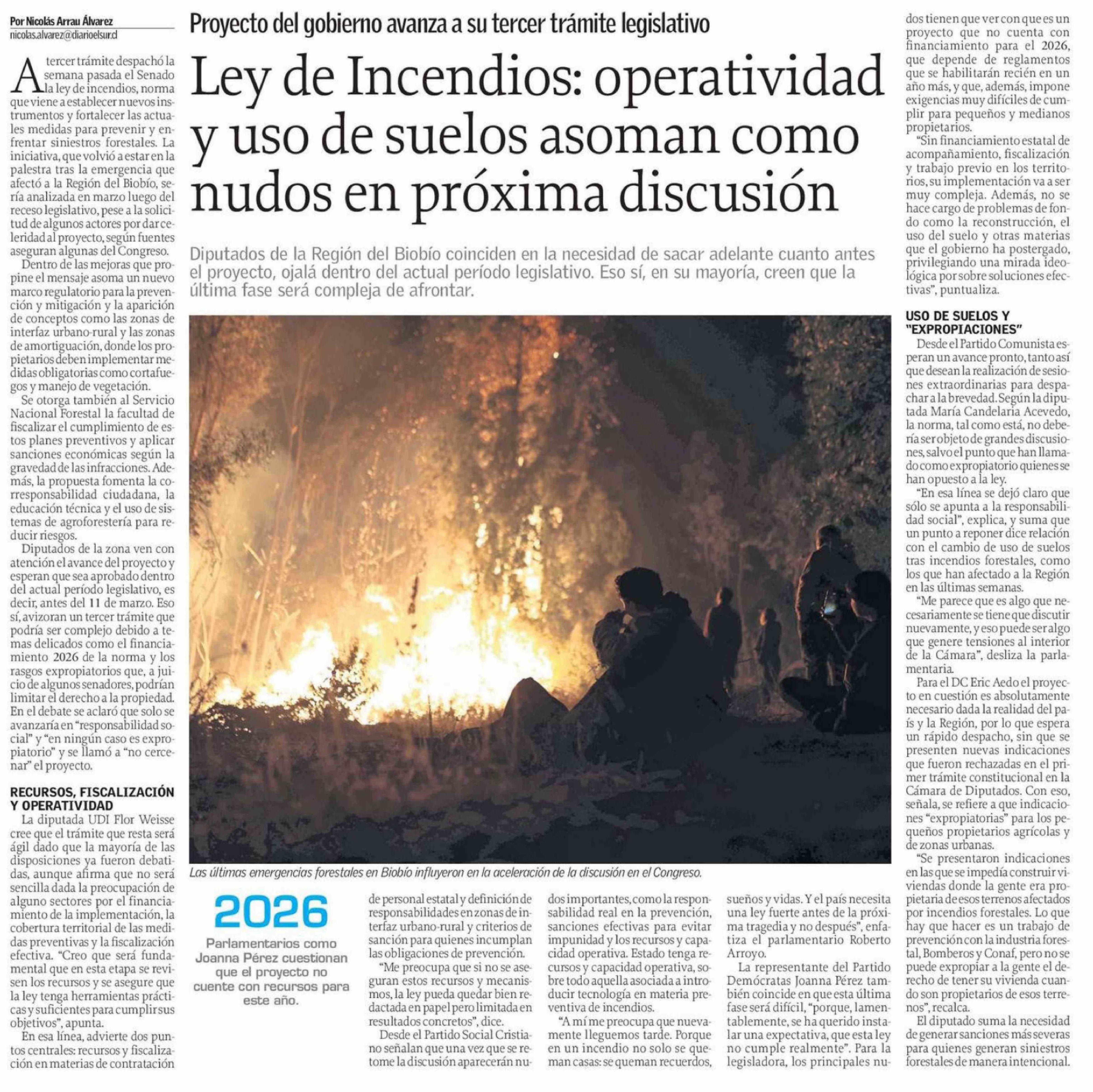 Ley de Incendios: operatividad y uso de suelos asoman como nudos en próxima discusión 02-02-2026 El Sur |