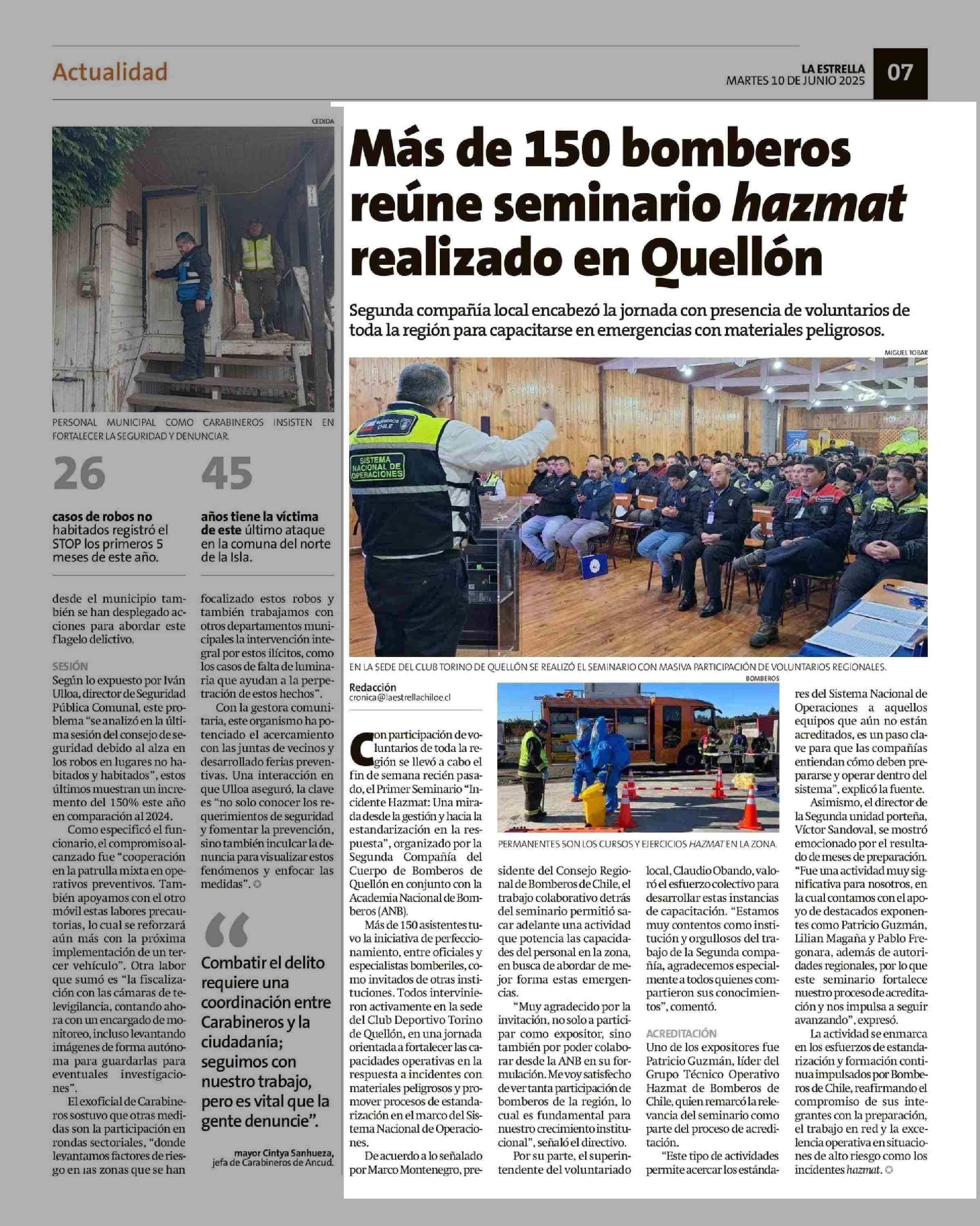Más de 150 bomberos reúne seminario hazmat realizado en Quellón 10-06-2025 La Estrella de Chiloé |