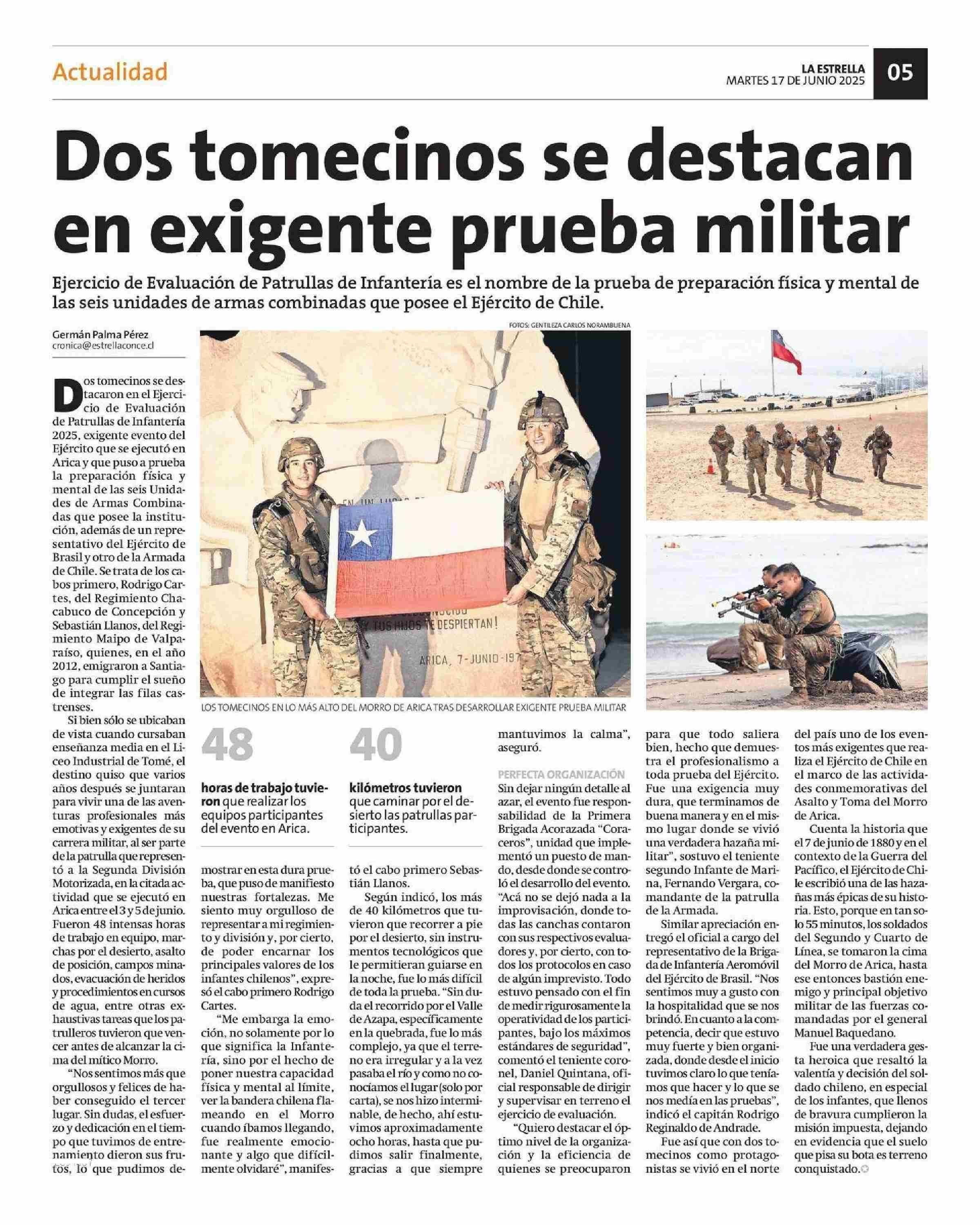 Dos tomecinos se destacan en exigente prueba militar 17-06-2025 La Estrella de Concepción |
