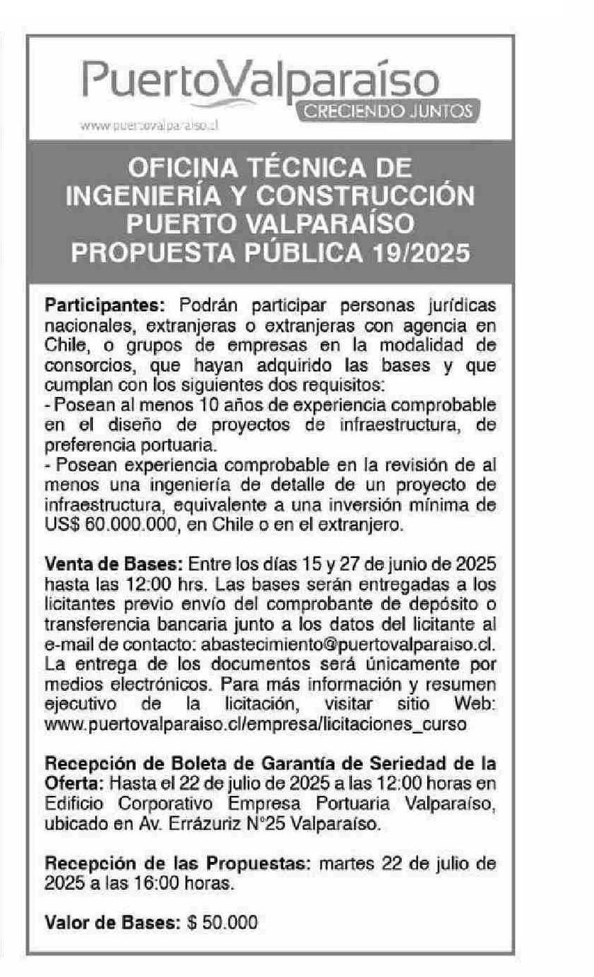 AVISO LICITACIONES: PuertoValparaíso 15-06-2025 El Mercurio de Valparaíso |