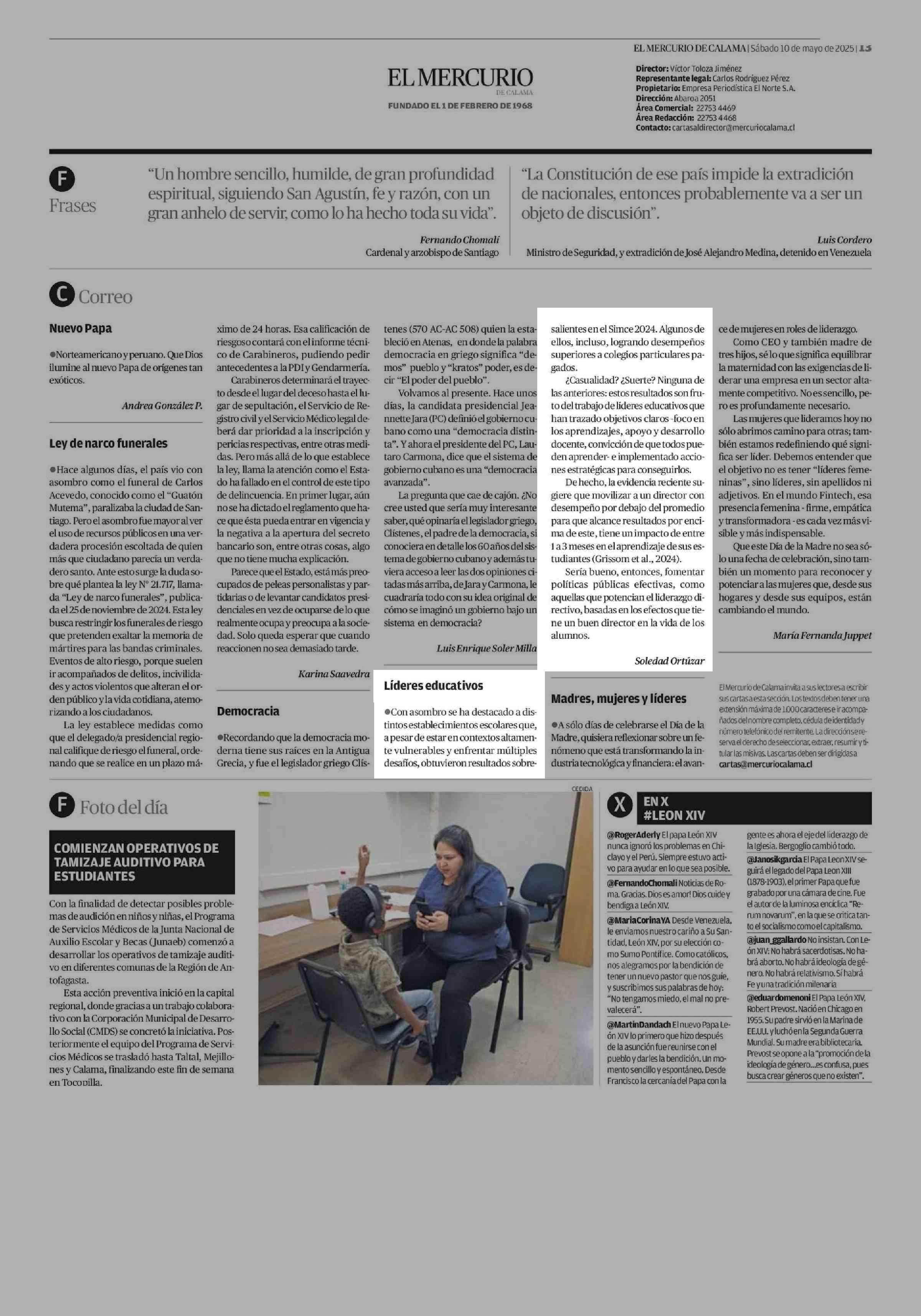 Líderes educativos 10-05-2025 El Mercurio de Calama |
