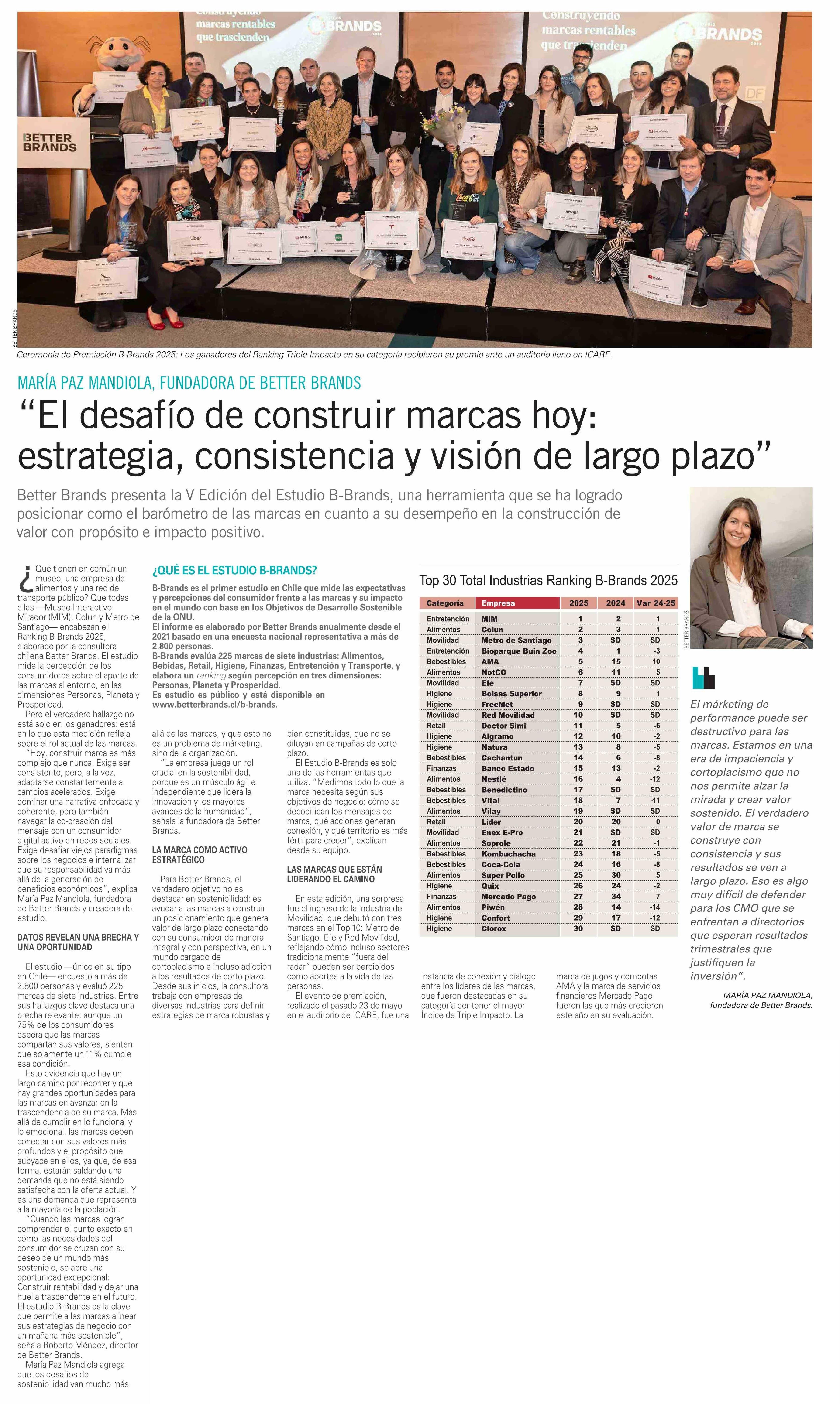 "El desafío de construir marcas hoy: estrategia, consistencia y visión de largo plazo" 19-06-2025 El Mercurio |