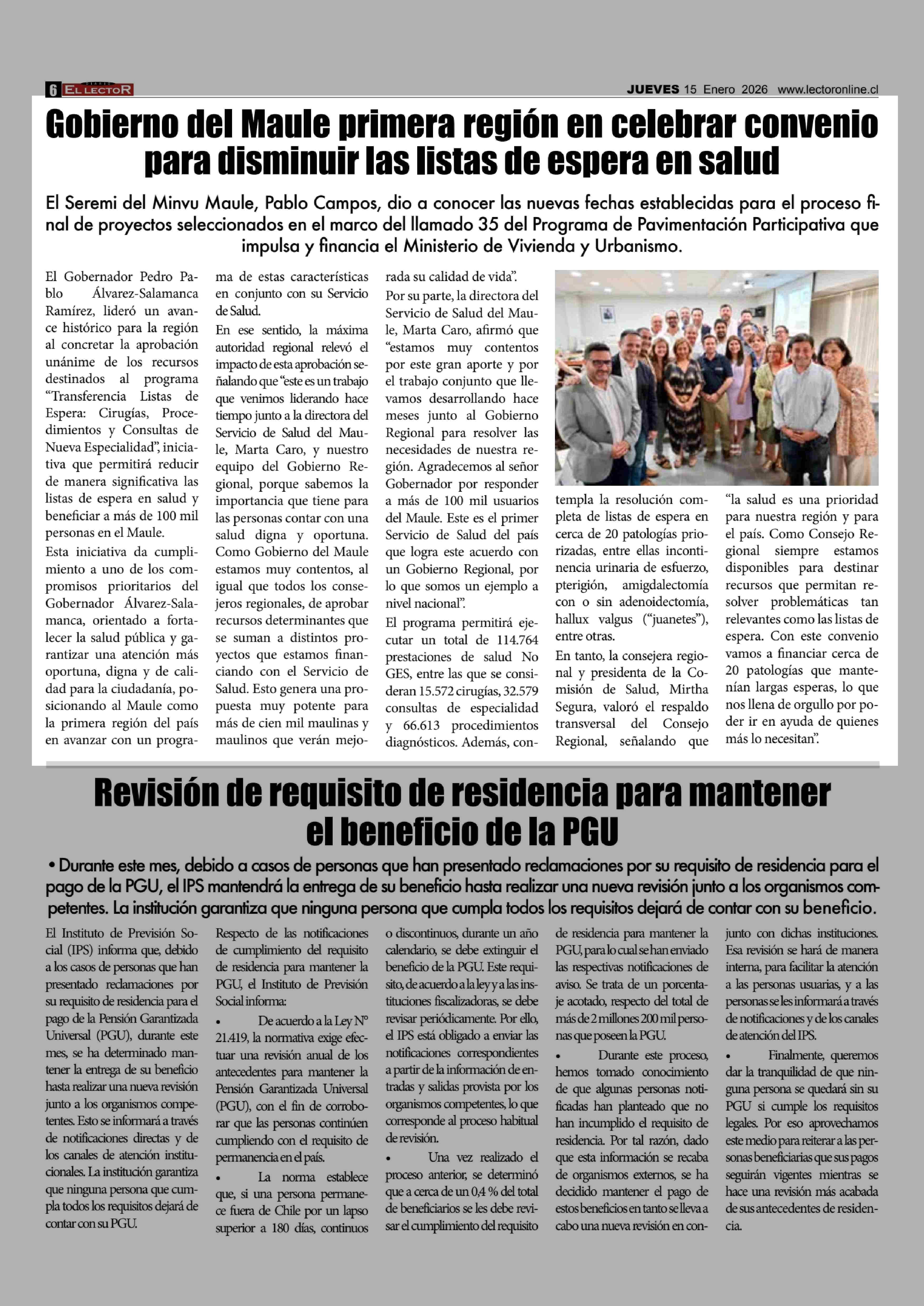 Gobierno del Maule primera región en celebrar convenio para disminuir las listas de espera en salud 15-01-2026 El Lector |