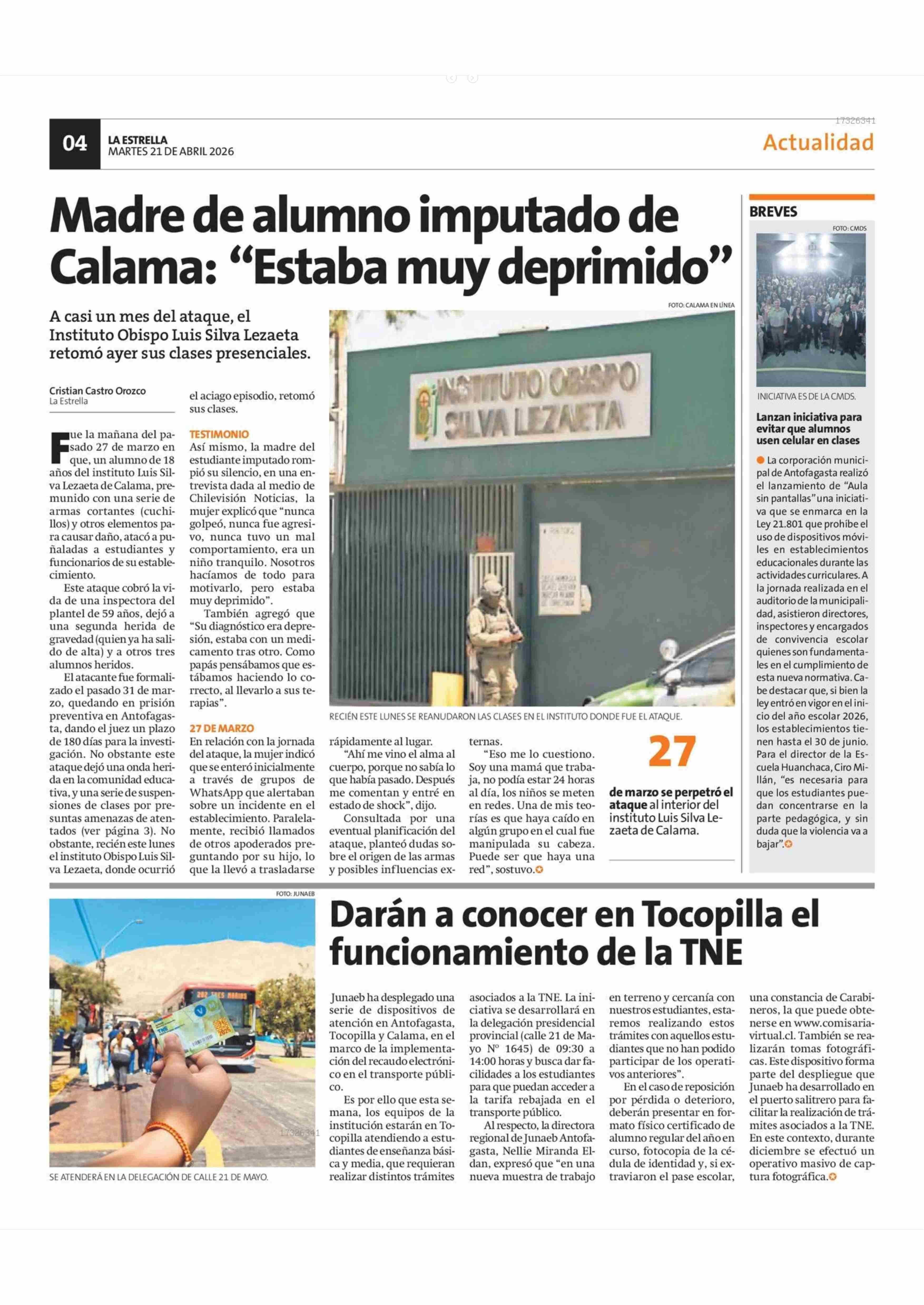 Fecha: 21-04-2026 Sector: Noticia general Región: Región de Antofagasta