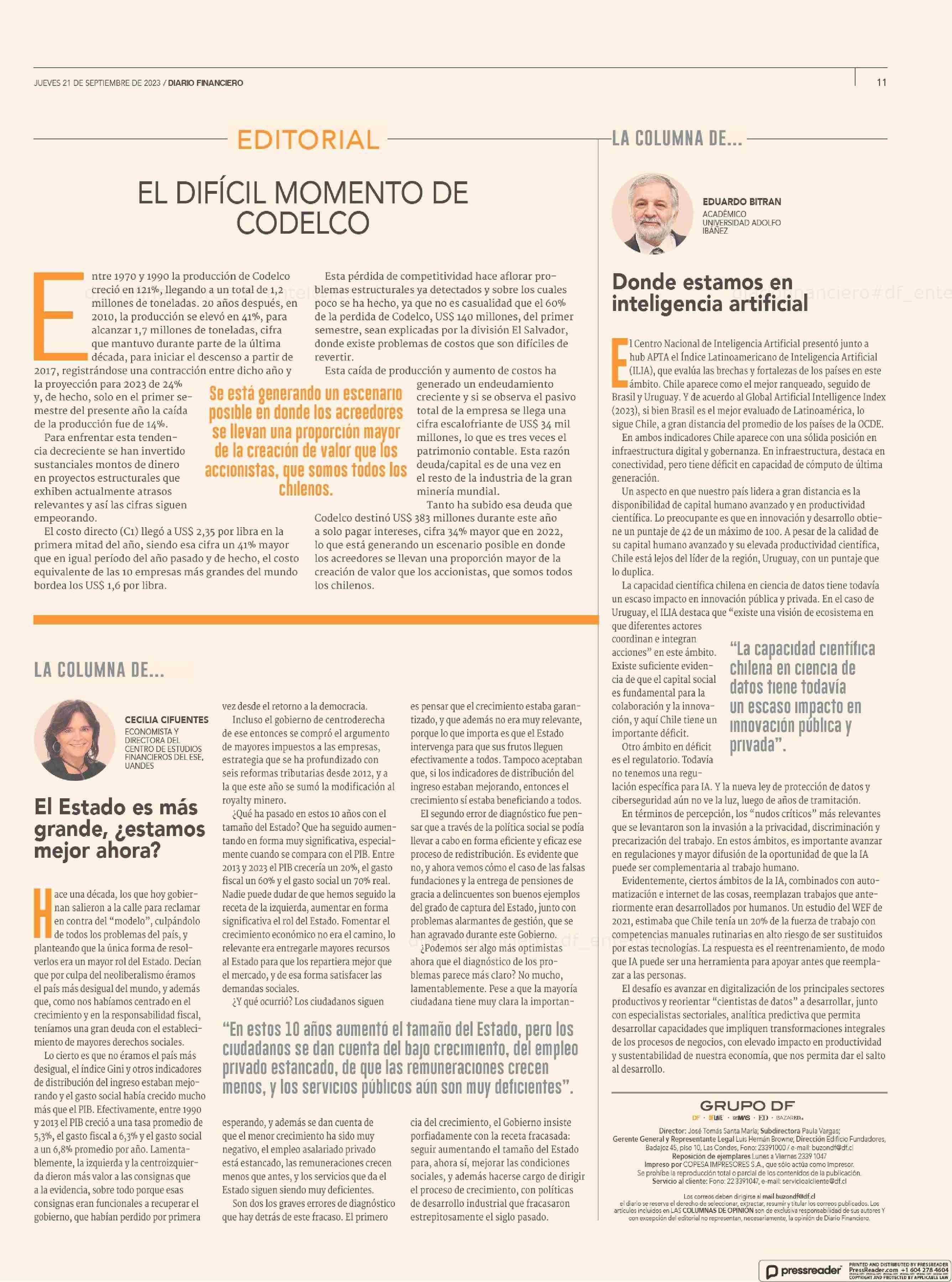 Donde estamos en inteligencia artificial 21-09-2023 Diario Financiero |