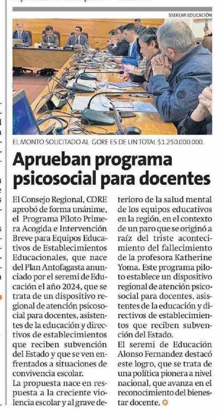 Aprueban programa psicosocial para docentes 07-06-2025 La Estrella de Antofagasta |