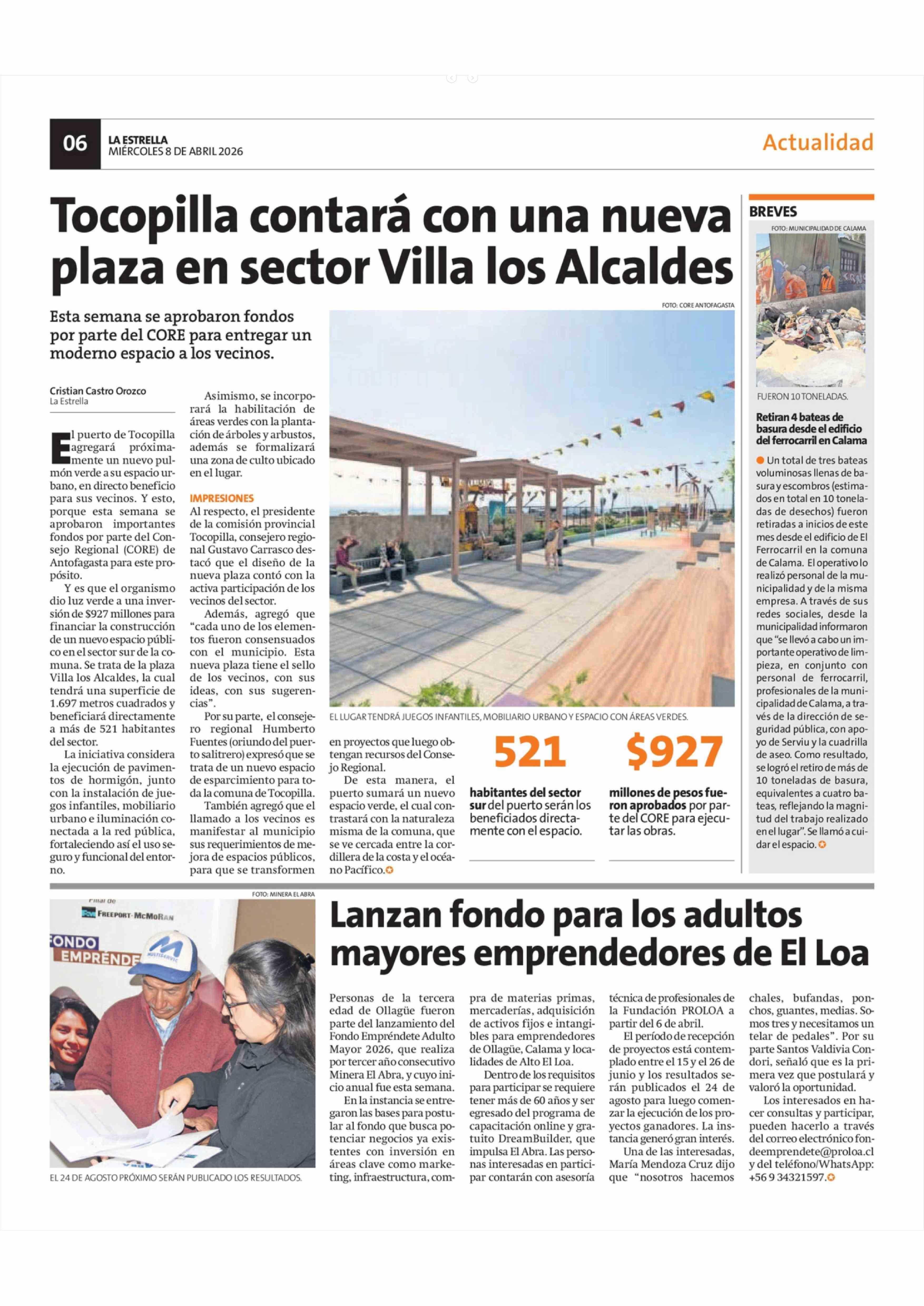 Lanzan fondo para los adultos mayores emprendedores de El Loa 08-04-2026 La Estrella de Antofagasta |