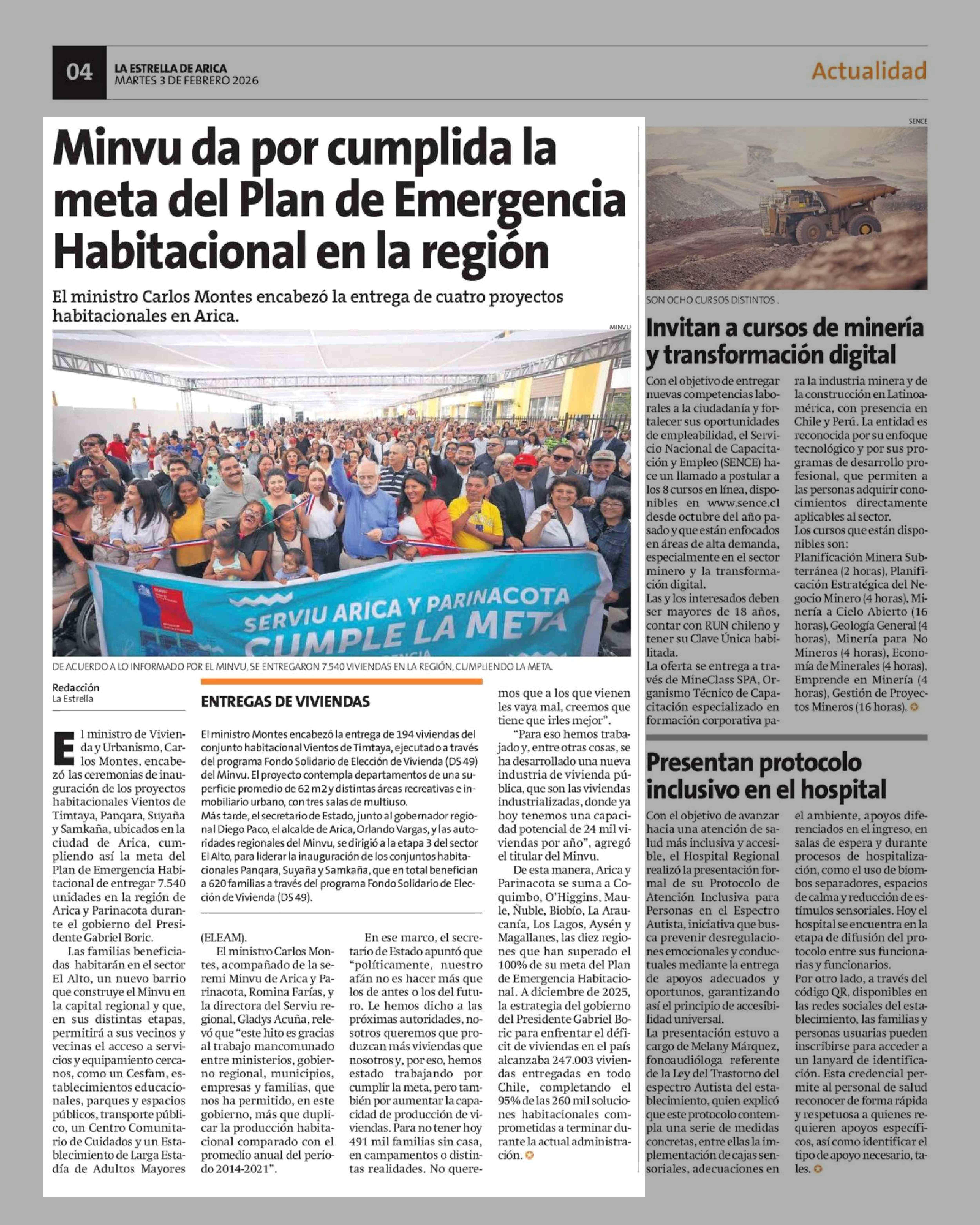 Minvu da por cumplida la meta del Plan de Emergencia Habitacional en la región 03-02-2026 La Estrella de Arica |