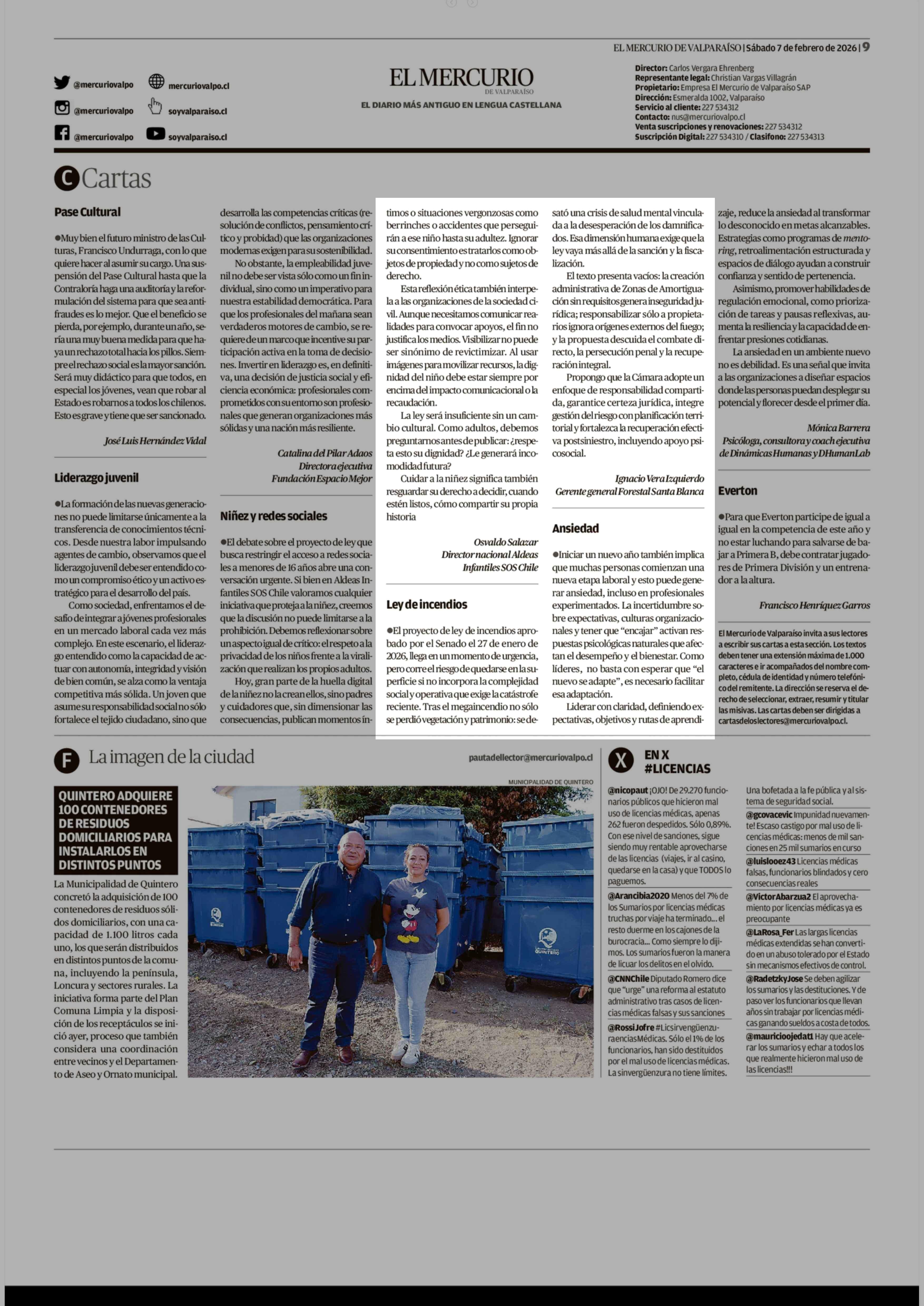 Cartas: Ley de incendios 07-02-2026 El Mercurio de Valparaíso |