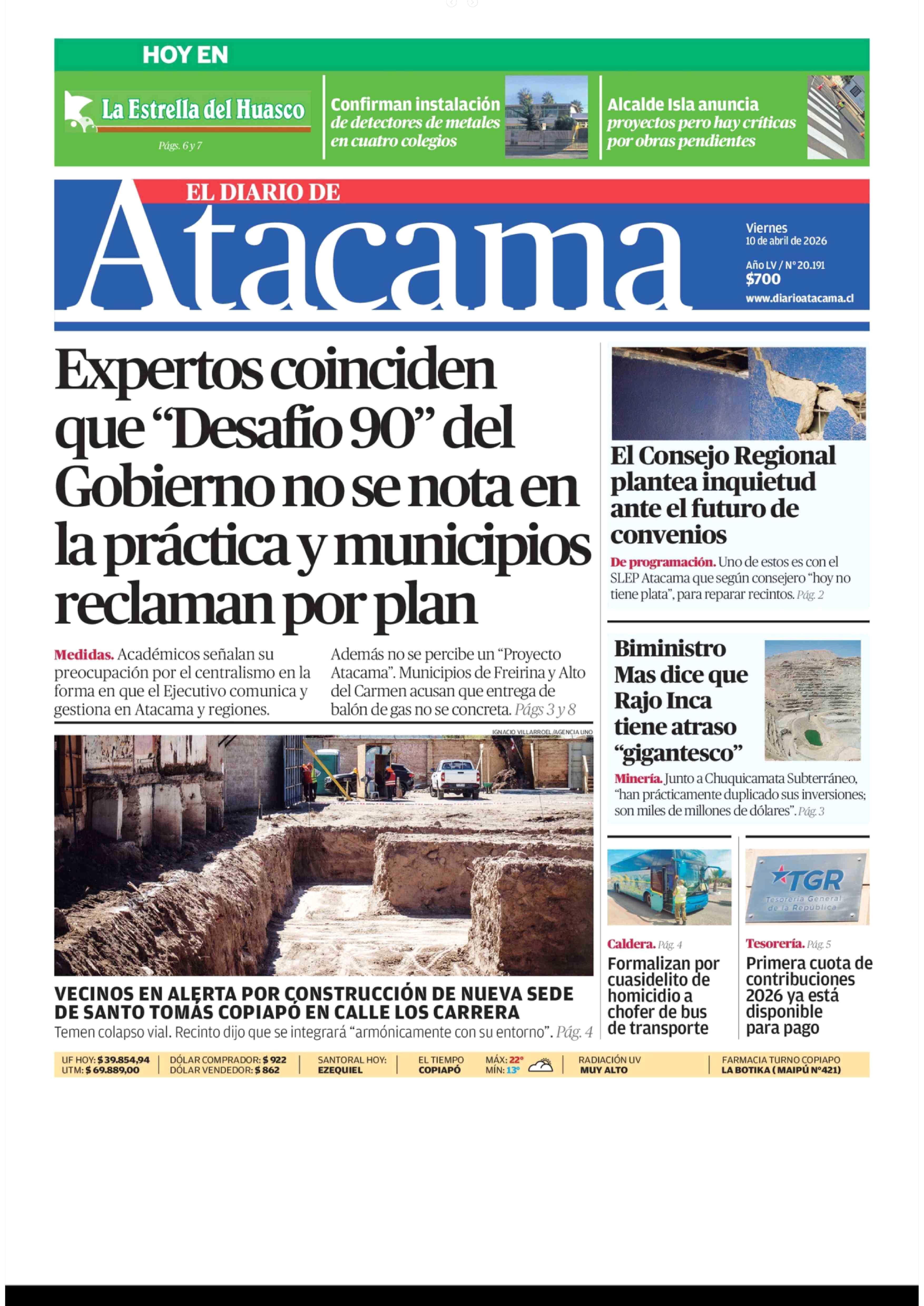| Fecha: | 10-04-2026 | Sector: | Portada | Región: | Región de Atacama |