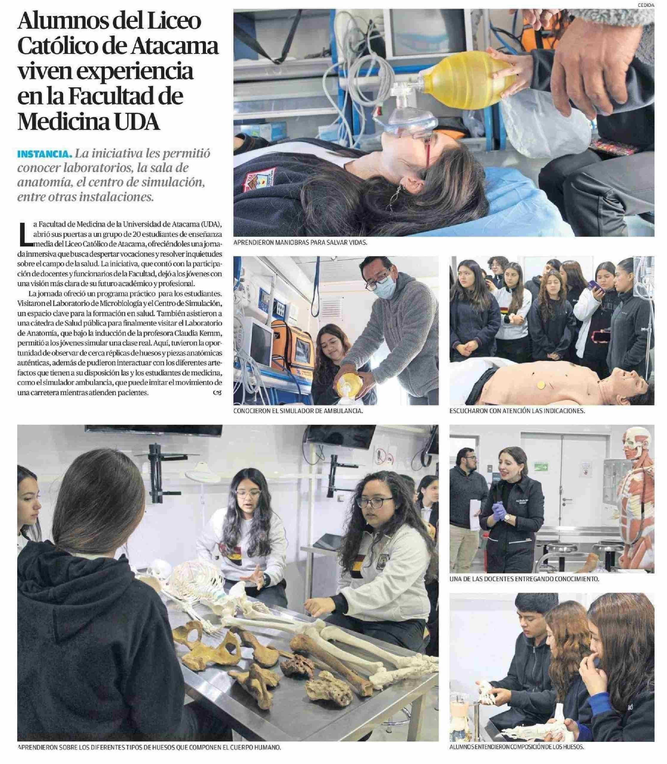 Alumnos del Liceo Católico de Atacama viven experiencia en la Facultad de Medicina UDA 31-05-2025 El Diario de Atacama |