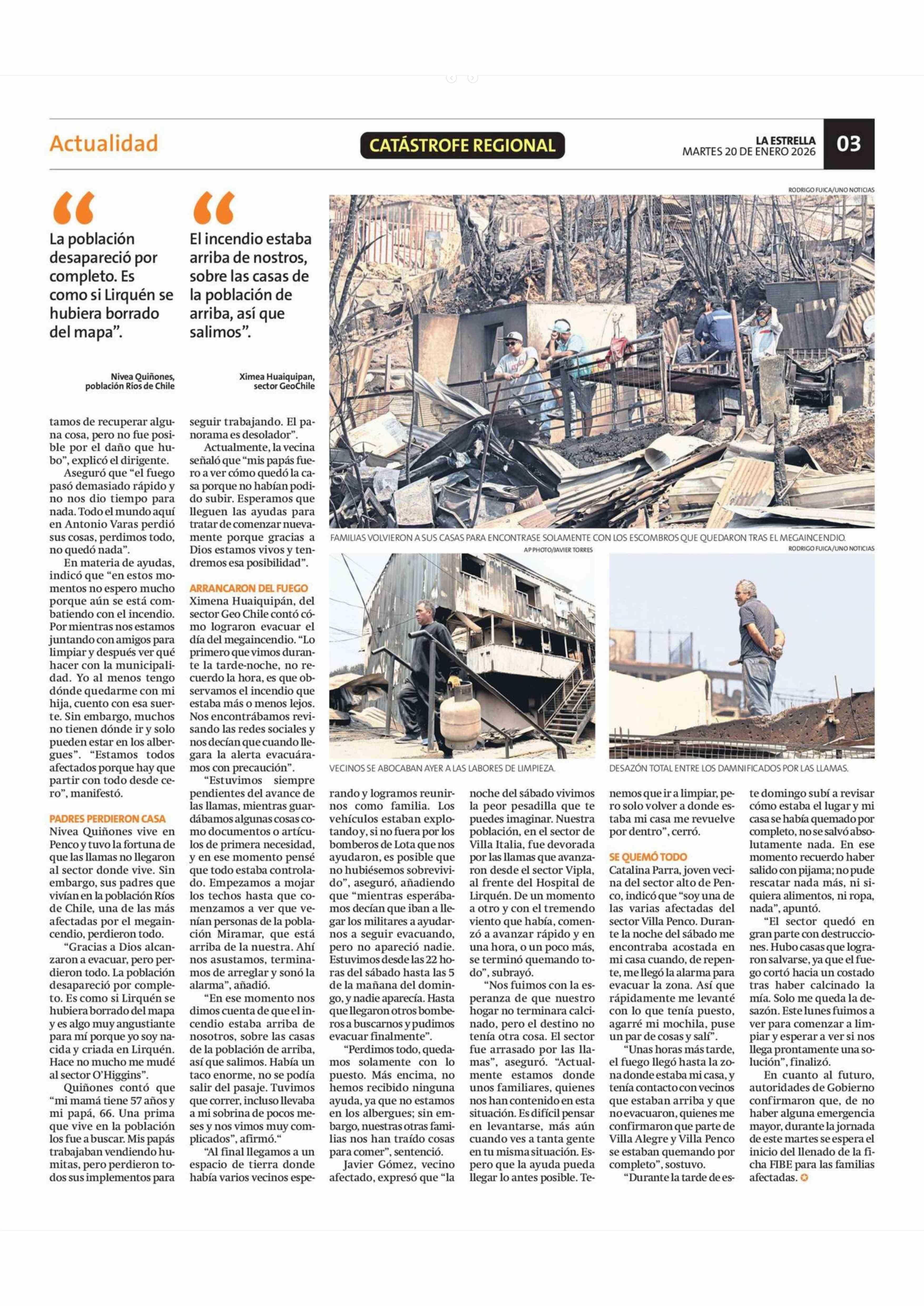 El drama y la tristeza de familias penconas que lo perdieron todo 20-01-2026 La Estrella de Concepción |