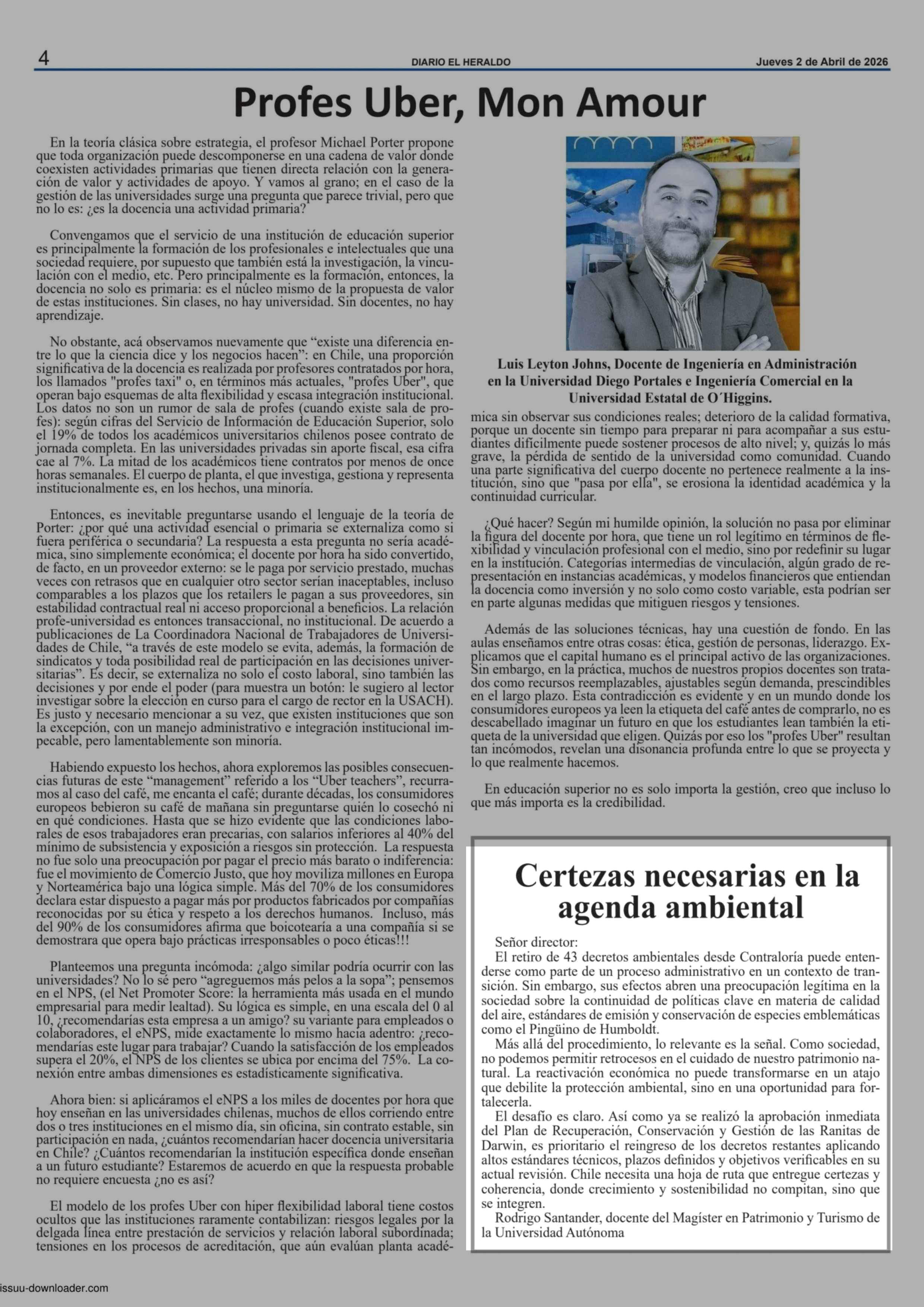 Cartas: Certezas necesarias en la agenda ambiental 02-04-2026 El Heraldo |