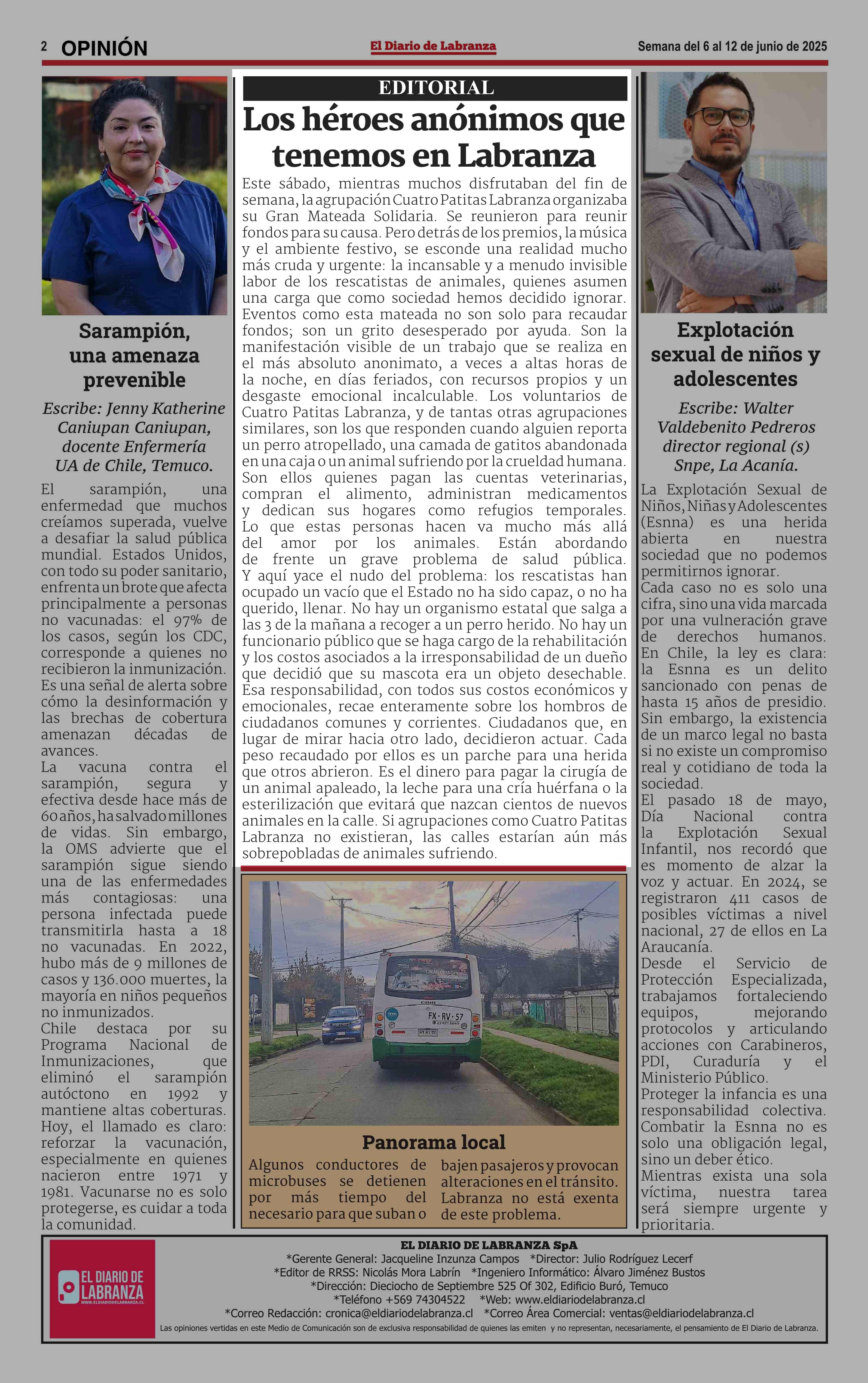 | Fecha: | 09-06-2025 | Sector: | Editorial | Región: | Región de la Araucanía |