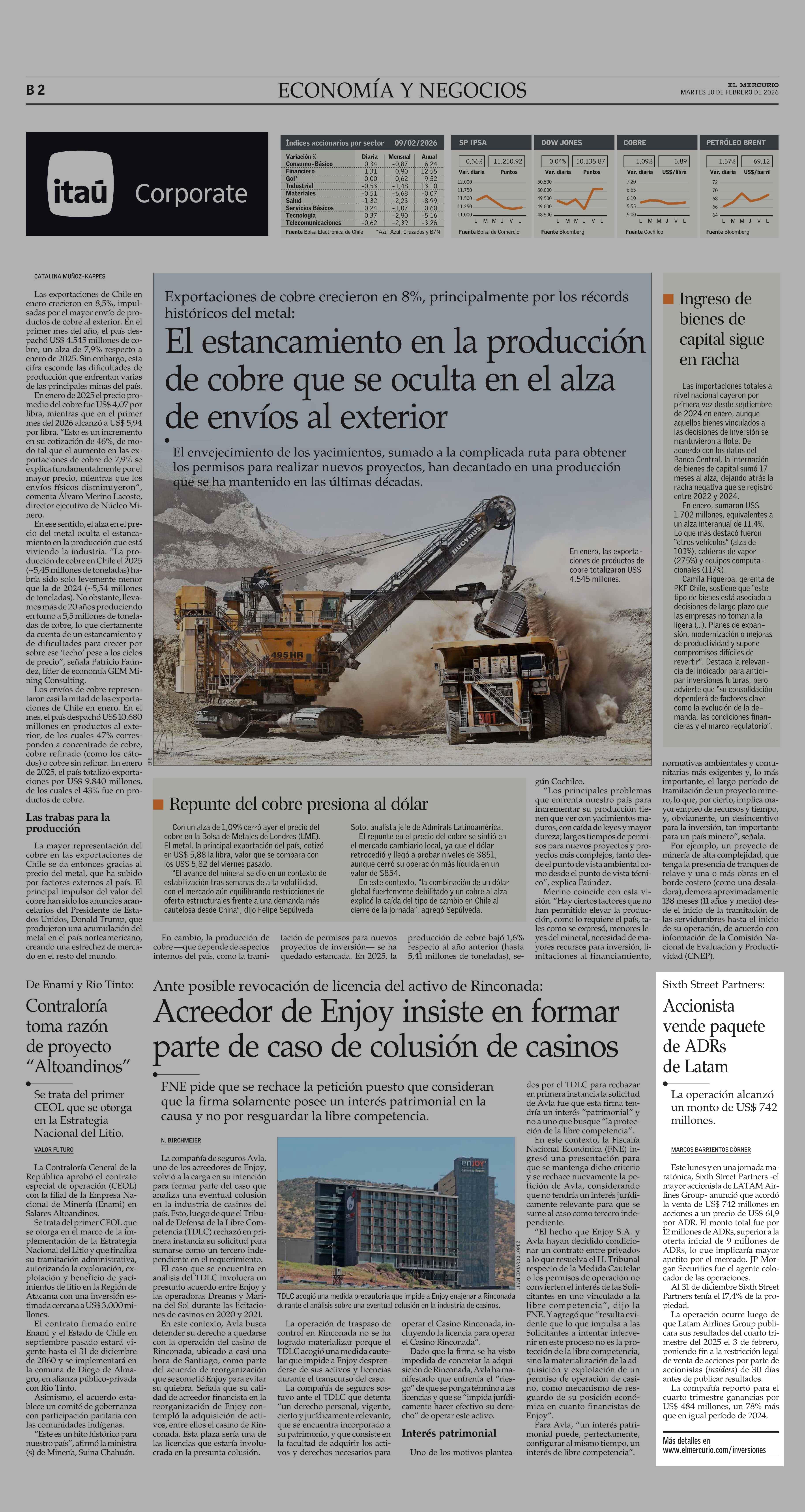 Accionista vende paquete de ADRs de Latam 10-02-2026 El Mercurio |