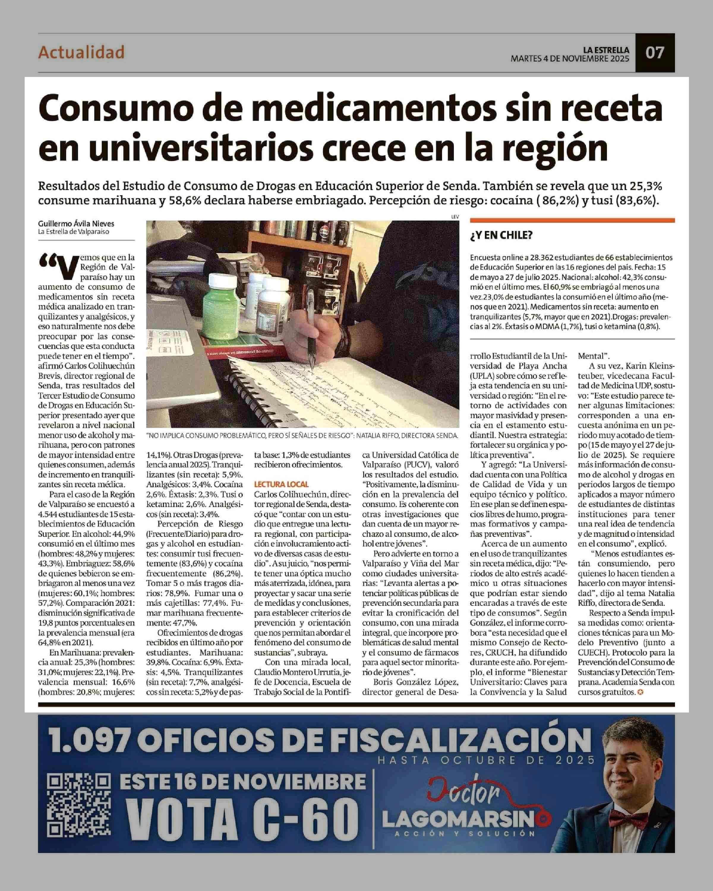 Consumo de medicamentos sin receta en universitarios crece en la región 04-11-2025 La Estrella de Valparaíso |