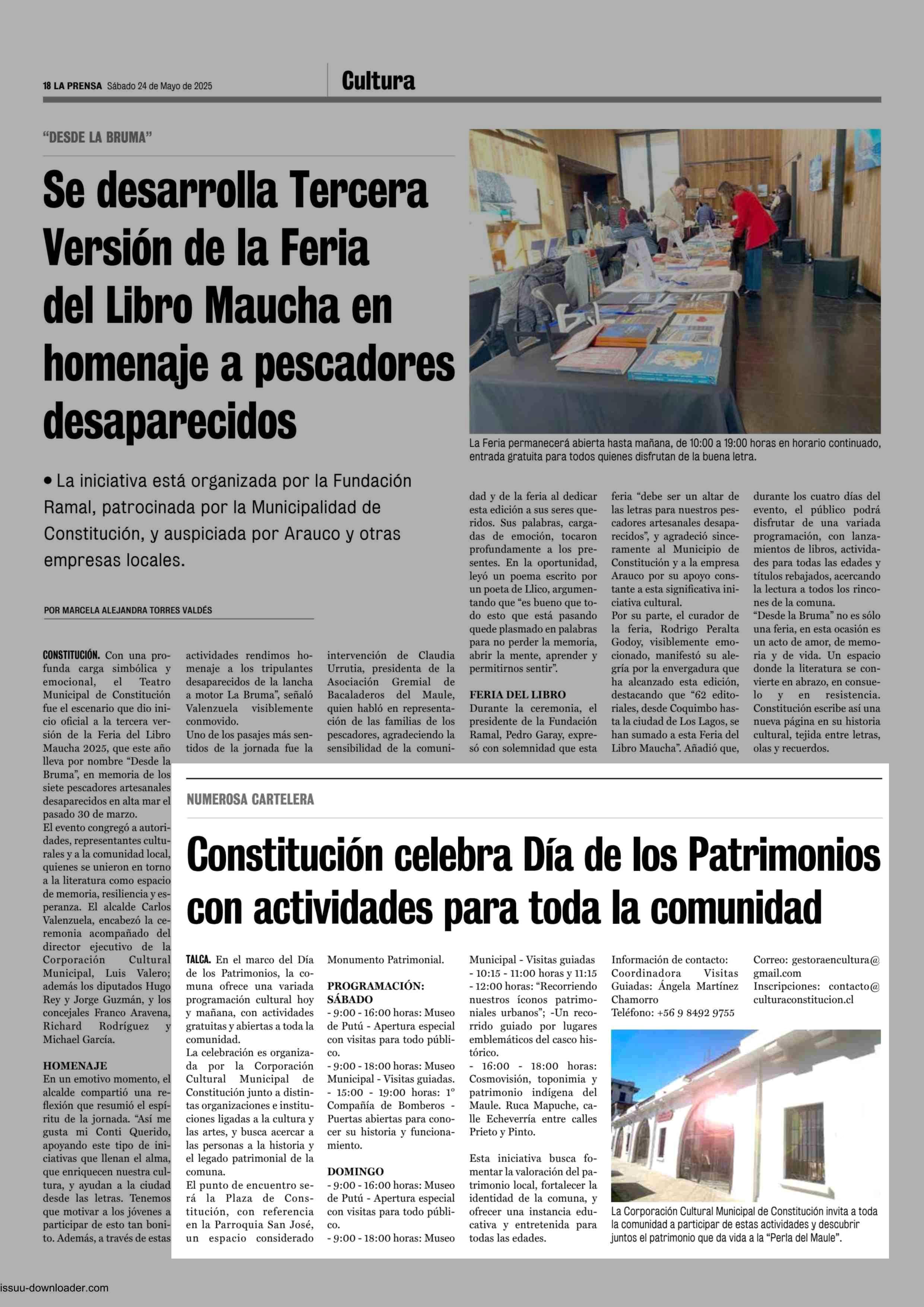 Constitución celebra Día de los Patrimonios con actividades para toda la comunidad 24-05-2025 La Prensa de Curicó |