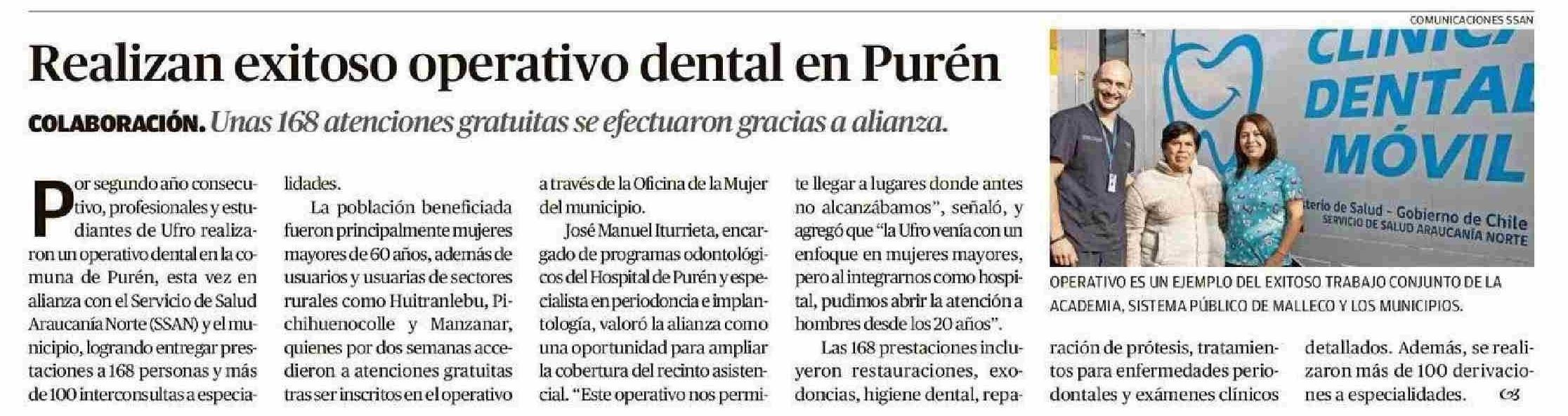 Realizan exitoso operativo dental en Purén 30-05-2025 El Austral de la Araucanía |
