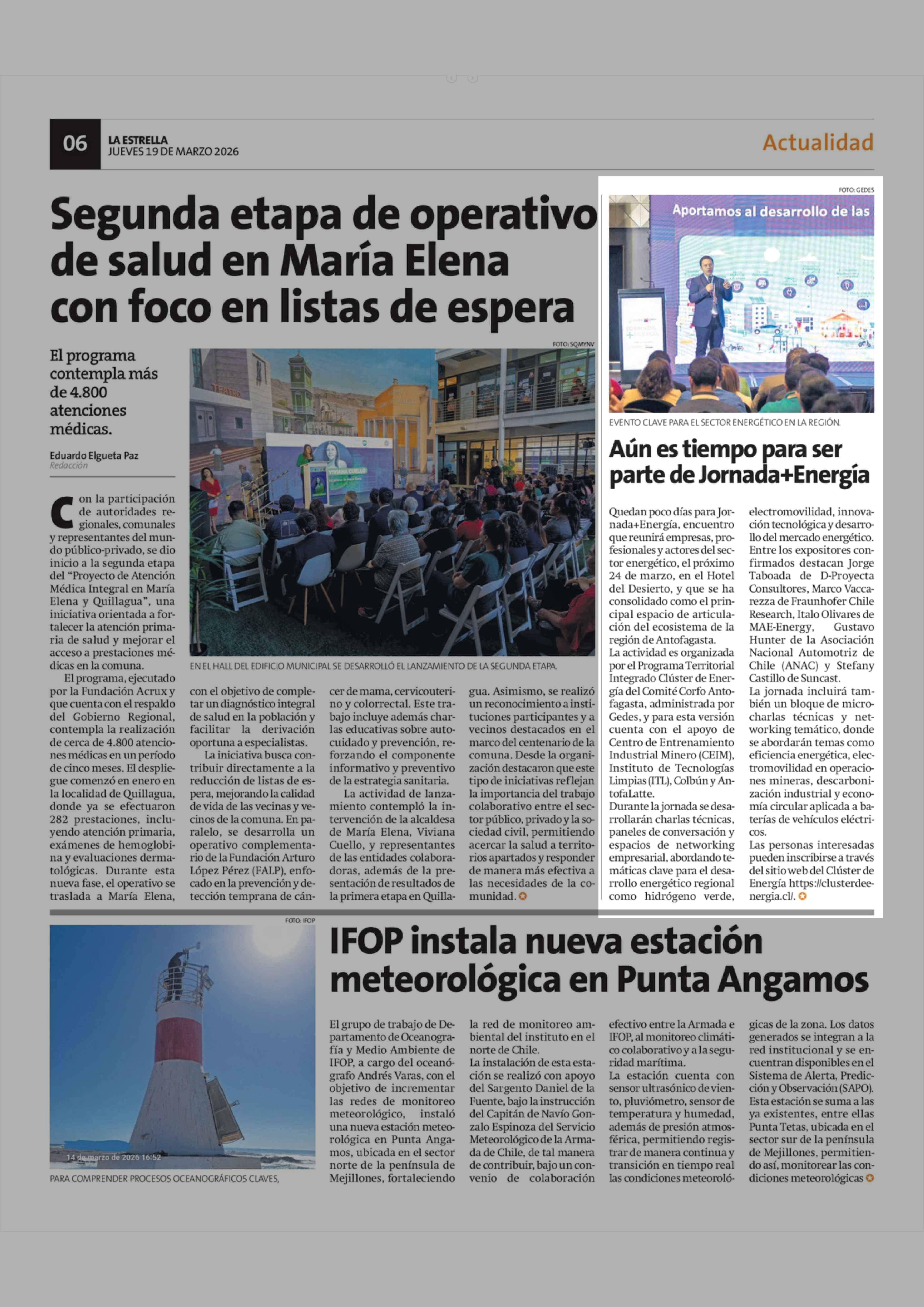 Aún es tiempo para ser parte de Jornada+Energía 19-03-2026 La Estrella de Antofagasta |