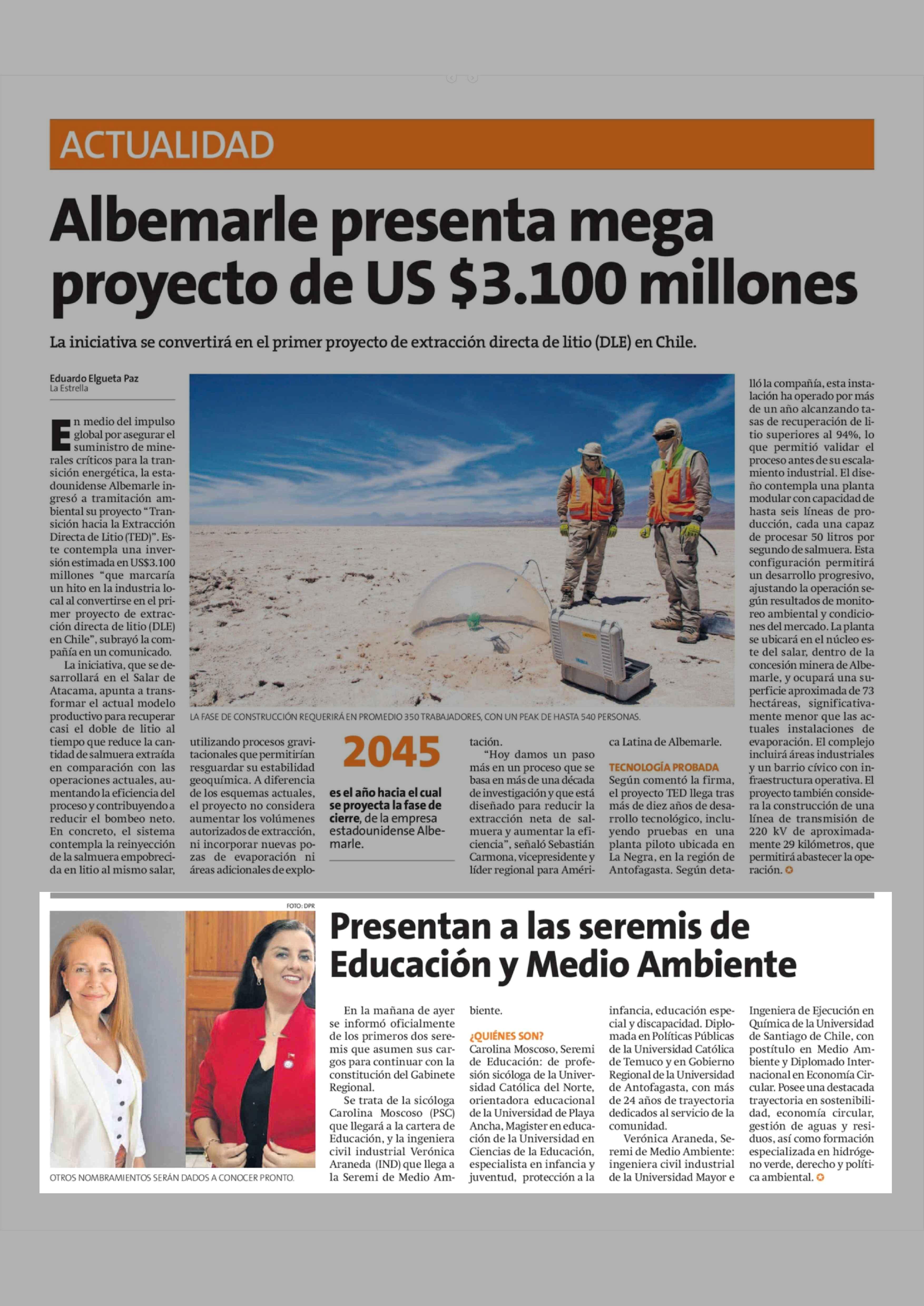 Presentan a las seremis de Educación y Medio Ambiente 26-03-2026 La Estrella de Antofagasta |